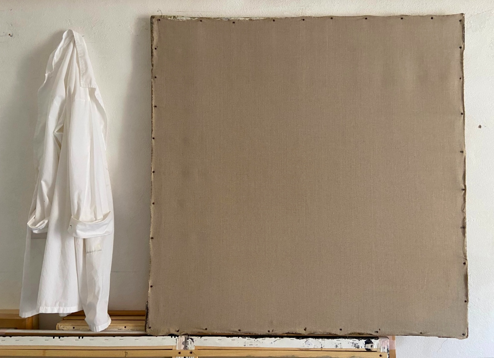 Non c’è allora sequenza ordinata nel succedersi delle opere esposte, così come non c’è un ordine certo per prendere atto di un' ulteriore stanza, quella dove ci aspetta una grande tela grezza, appena inchiodata al suo telaio, ancora sfrangiata nei bordi, vuota e in attesa di interventi. Le fa pendant un camice da pittore appeso al muro, sospeso nella pausa della sua funzione, intriso di memoria di tanti momenti pittorici della storia dell’arte. Protagonista di innumerevoli studi d’artista, il camice è, con la tela, installazione artistica che materializza quegli atelier e dà concretezza visiva e tattile al rapporto vitale e conflittuale tra artefice e opera, tra il nulla della tela e la creatività del fare. Giovanni Carta ricrea così un momento di storia personale e collettiva e ci costringe a riflettere sulla sua attività che implica un’ossessione costante della pittura di ogni tempo.