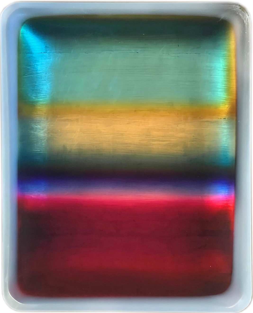 ma sfumando e suscitando un effetto fluttuante indefinito. L'estensione delle aree tonali si ampliano provocando la sensazione di avanzamento e poi di arretramento. La figura umana si è assentata, ha abbandonato il palcoscenico, lasciando campo al colore (Color field) e alla luminescenza, che si articolano assumendo l'aspetto di eteree teofanie in cui il silenzio