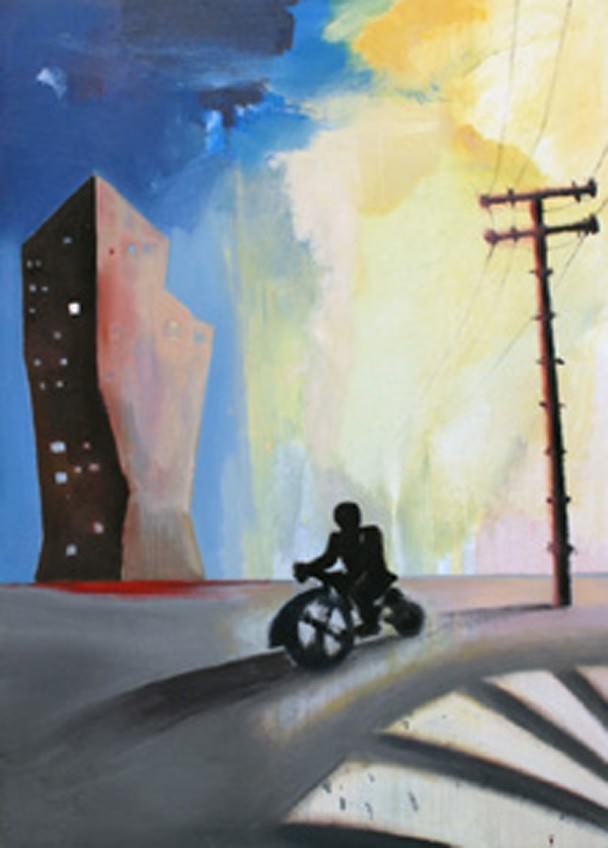 . La città, un tempo fonte d’ispirazione primaria dell’artista, è qui mescolata insieme a immagini di paesaggi e scenari di un “altrove” immaginario, oltre la dimensione della realtà. La sua pittura diventa più rarefatta e meno materica, ma conquista una spazialità inaspettata e finora inedita, con una colorazione più vivace rispetto al periodo precedente.
