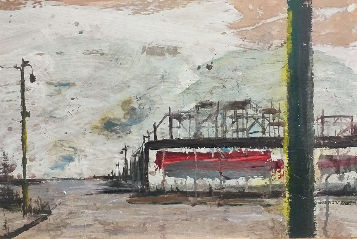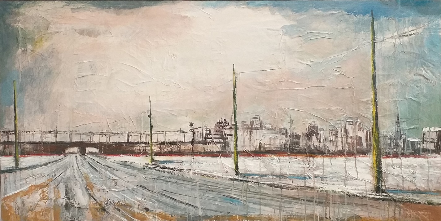 La natura si riappropria di quello che le è stato tolto dall’uomo, riconquista vita occupando strade, muri, case. Il messaggio è particolarmente evidente nel quadro-manifesto della mostra, Giungla urbana (2021), in cui una macchia verde di vegetazione si estende a perdita d’occhio in estrema lontananza, laddove una volta c’era una periferia, un quartiere. Le ciminiere delle fabbriche sono diventate verdi, ricoperte di muschi e rampicanti. Questi i quadri più recenti, intitolati anche Off limits, a indicare territori interdetti, forse proibiti, pericolosi. La città è diventata selvaggia, non più civile. In esposizione poi alcune periferie e qualche paesaggio industriale degli anni appena passati, anche provenienti da collezioni private.