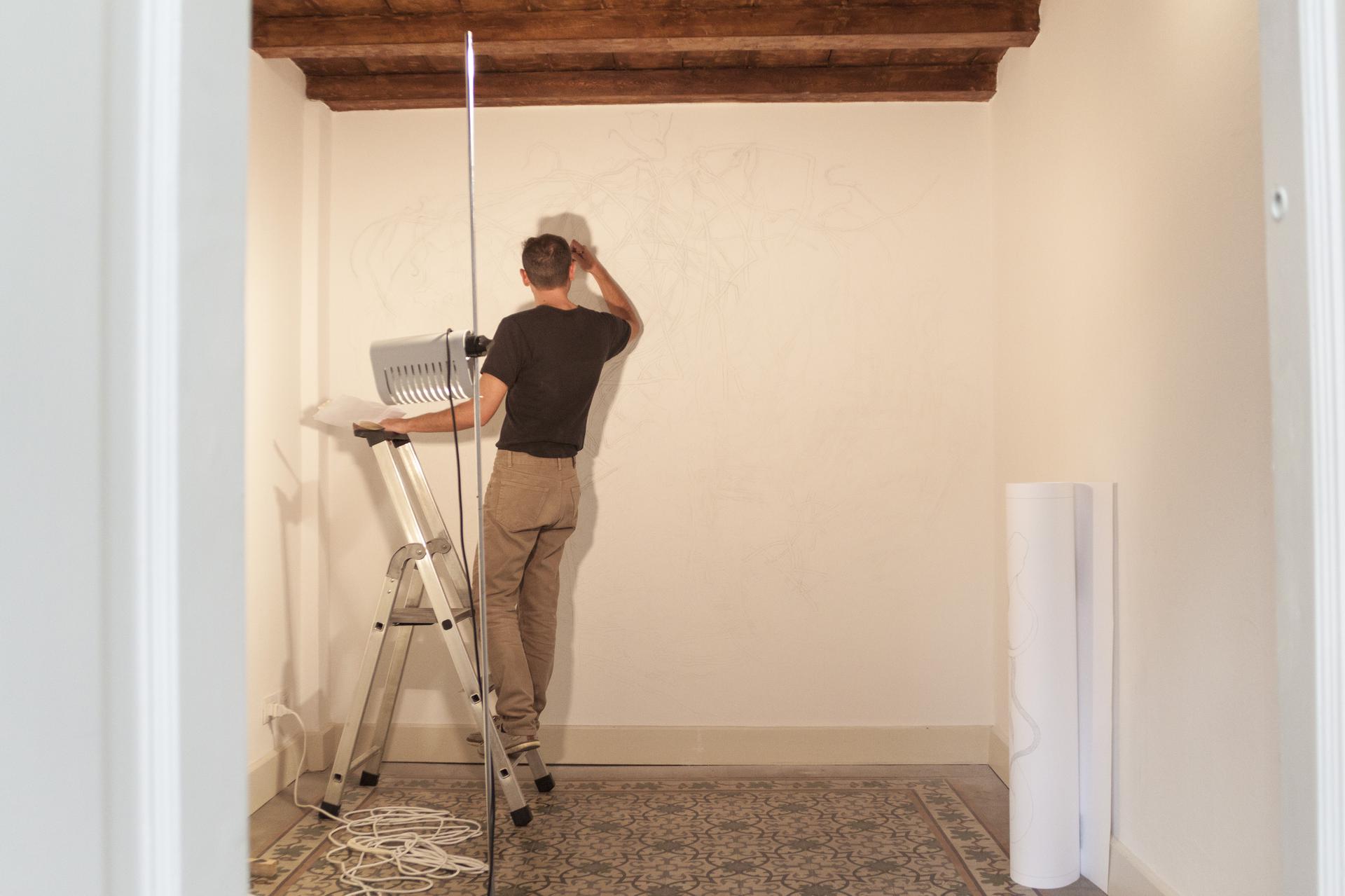 Le opere in mostra, realizzate da Giovanni De Lazzari a partire dal 2008, seguono il filo conduttore della relazione con la natura, che origina da un processo di osservazione profondo e prolungato. Attraverso il tratto della matita, lo strumento più assiduamente utilizzato dall’artista, immagini e testi prendono forma come miniature nelle pagine dei taccuini che De Lazzari realizza in una pratica quotidiana, fino ad arrivare alla scala architettonica nel wall-drawing realizzato per la mostra.
