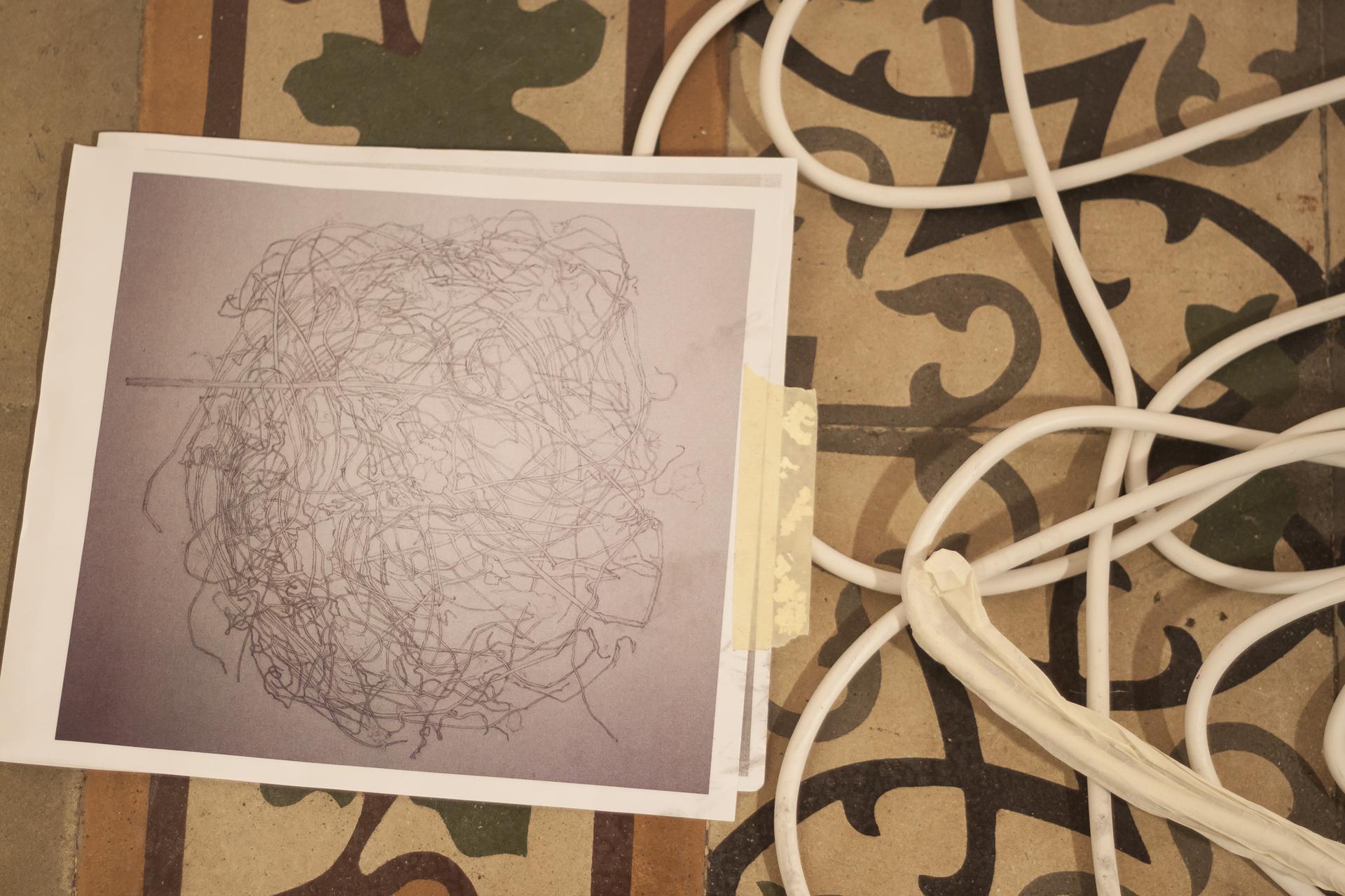 Gli elementi vegetali e animali, ricorrenti nei lavori esposti, stabiliscono un dialogo inedito con le decorazioni e gli arredi della casa-studio, oltre che con i dipinti del pittore Renzo Bongiovanni Radice. È il caso del trittico di disegni Abbracci (2013), in cui l’intreccio tra due serpenti crea un’immagine potente sospesa tra amore e morte.