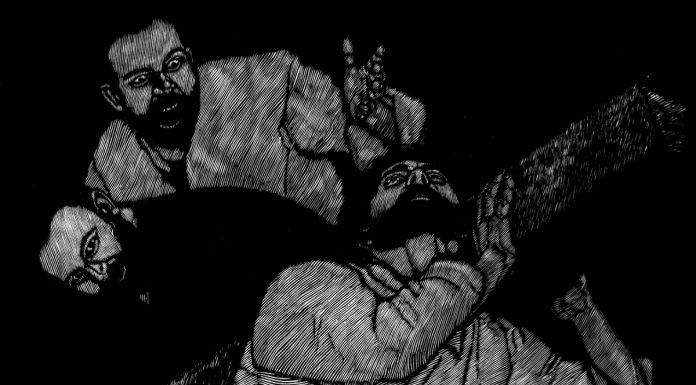 Dettori ha guardato ai grandi maestri della storia della pittura, al Medioevo, al Cinquecento, al Manierismo, al Barocco. E ancora a quelli della xilografia sarda, Remo Branca, Mario Delitala, Stanislao Dessy. Poi ha fatto di testa sua, mettendo al centro della scena un corpo e un volto, costruendogli attorno una scena di corpi e volti uguali. Lo ha raffigurato nudo e curvo, appesantito delle colpe di un mondo che lui solo ha dovuto espiare con la sofferenza e la morte, gli ha dato un colloquio diretto con chi, spettatore, lo guarderà e si sentirà in qualche modo coinvolto in questa situazione tragica.
