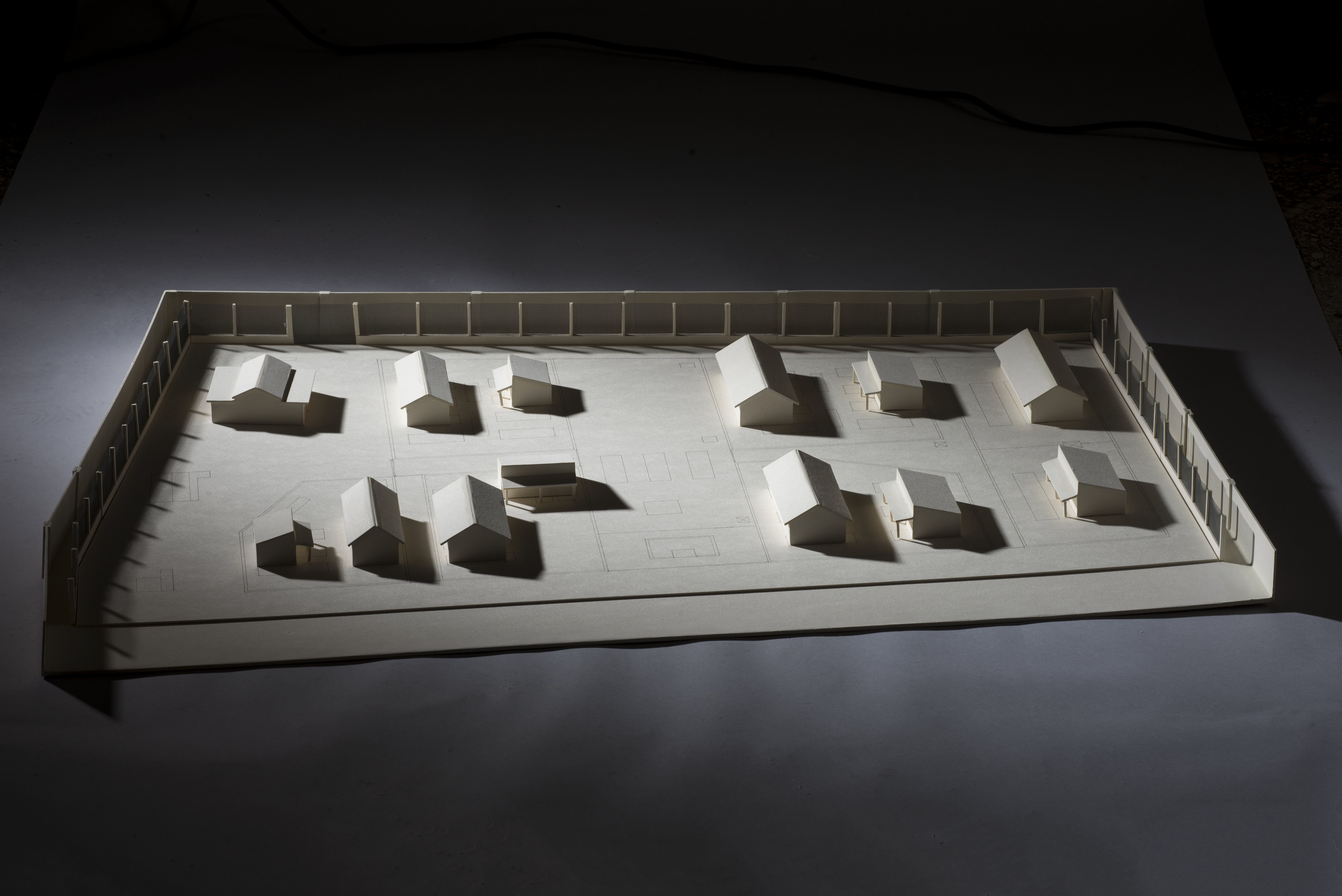 La mostra propone infine il plastico dal titolo Fortezza Europa, nel quale l’artista sovrappone il campo di concentramento fascista di Fossoli con un Centro d’accoglienza per stranieri attuale a Torino. Le due strutture, poste a paragone, propongono inquietanti similitudini nel loro apparire, come scriveva Michel Foucault “il diagramma di un potere che agisce per mezzo di una visibilità generale”.