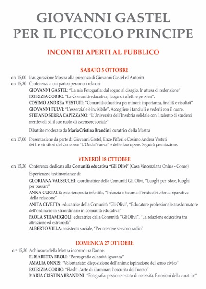 Curata da Maria Cristina Brandini, realizzata dal Piccolo Principe Società Cooperativa Sociale Onlus, in collaborazione con il Comune di Como, Settore Cultura e con il contributo della Casa Vincenziana Onlus (Como), la mostra affronta il tema scottante dell’infanzia violata attraverso 28 fotografie.