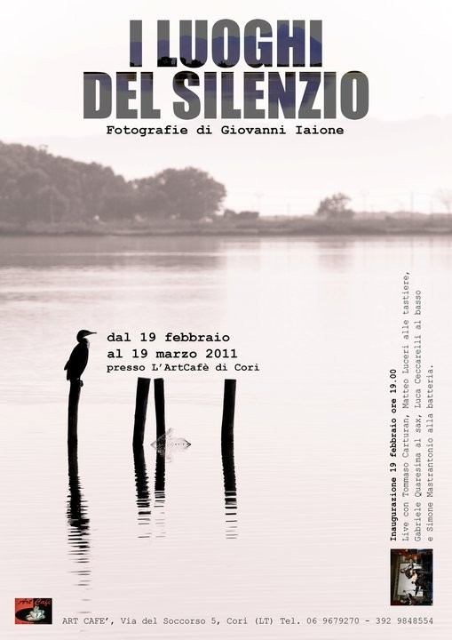 Si inaugura sabato prossimo, 19 febbraio, alle ore 19, presso l'ArtCafè, sito in via del Soccorso 5 a Cori, la mostra fotografica “I luoghi del Silenzio” di Giovanni Iaione.