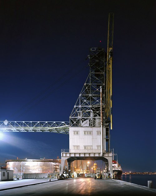L’obiettivo dell’artista si sofferma sul porto moderno e documenta le “macchine” nella loro evoluzione che ha seguito il modificarsi delle diverse vocazioni del porto fino alla struttura attuale
