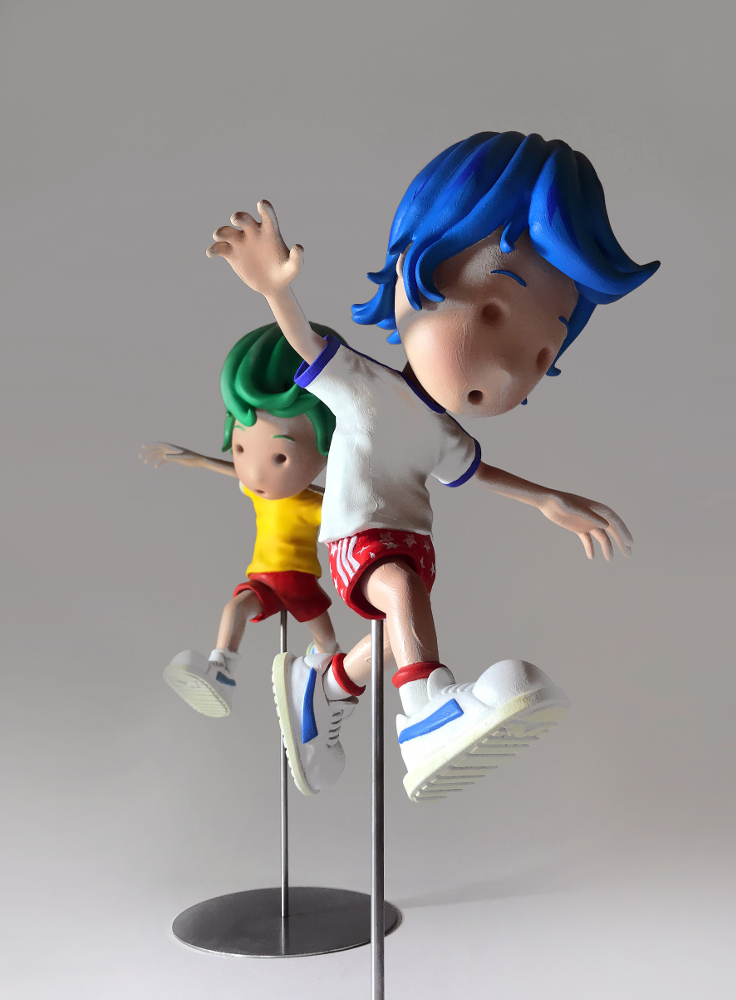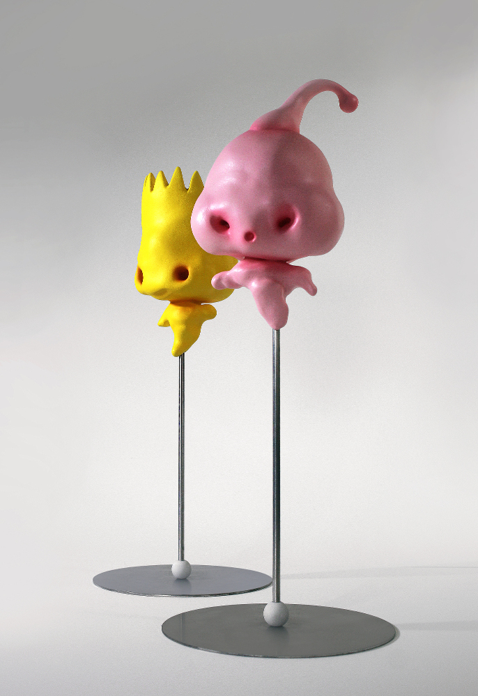 grazie a un complesso e raffinato mix di tecniche pittoriche e serigrafiche e di scultura analogica e tecnologia digitale - l’artista riesce a costruire una versione personale e lirica dei codici Superflat, animata da un approccio più caldo e partecipe ai temi universali dell’immaginario infantile e pop.