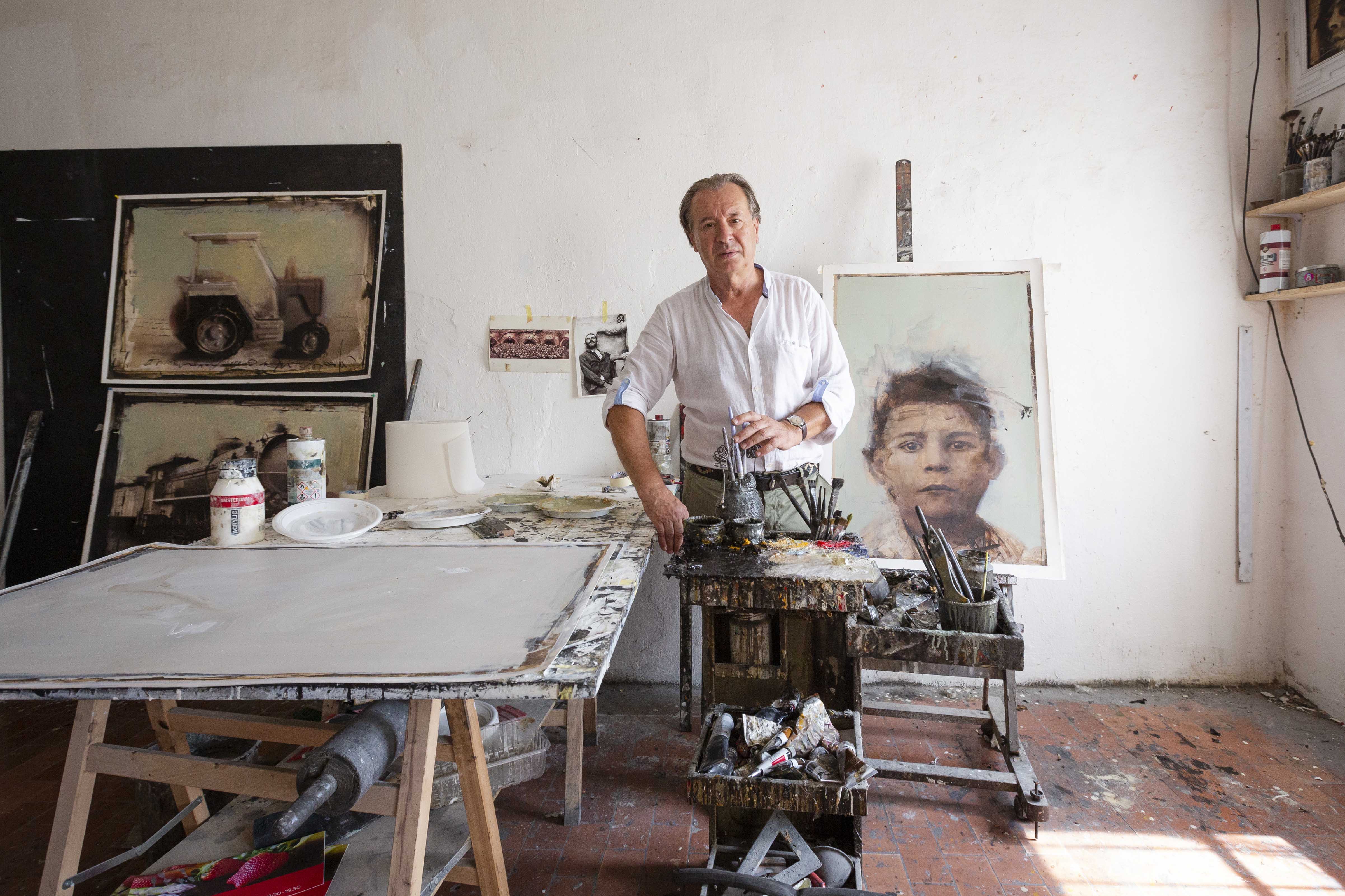 Non si tratta, infatti, di una semplice foto ritoccata e dipinta, l'immagine di fondo, viene completamente ricreata e reinventata e la materia pittorica si unisce alla fotografia sottostante divenendo quasi una cosa sola.