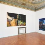 Segue l’equilibrio. La natura diviene teatro del mistero più imperscrutabile: la maternità. Per Delphine Hennelly (1979, Canada) l’ambientazione si trasforma in scenografia senza tempo e le sue pennellate materiche e gestuali rafforzano la compenetrazione con le figure. L’archetipo madre-figlio viene qui esplorato attraverso la lente dell’espressione gestuale, del linguaggio del corpo come canale di espressione dei sentimenti. Lo sapeva Giotto, lo ribadisce Delphine. È abbraccio tenero, è cura, in un’atmosfera fiabesca.