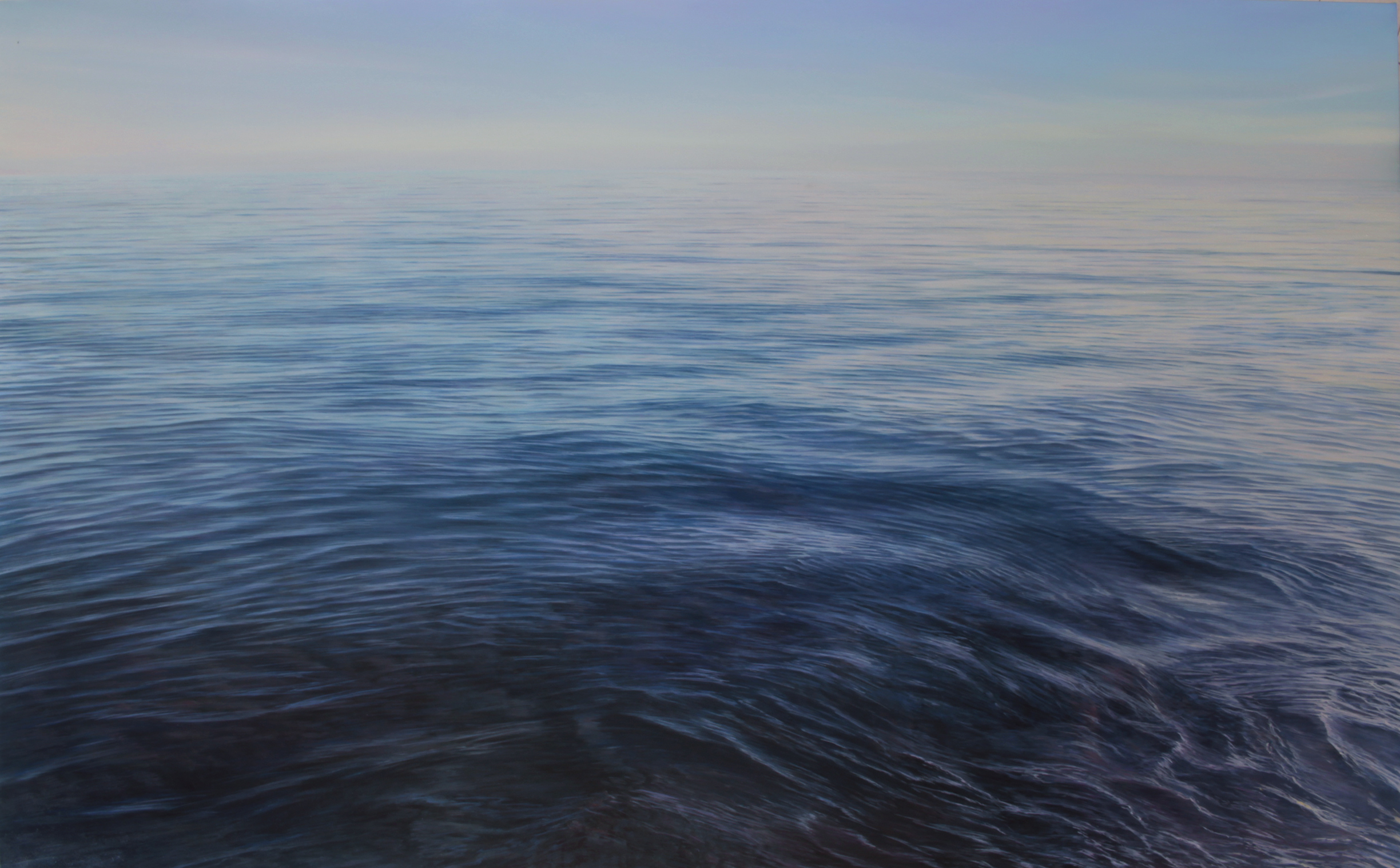 Il mare, tema ricorrente nella poetica dell'autore, viene interpretato attraverso un linguaggio pittorico al confine tra iperrealismo e metafisica. L'artista riproduce in modo didascalico l'onda che si infrange sulla battigia, la trasparenza dell'acqua, il lieve moto ondulatorio della superficie.