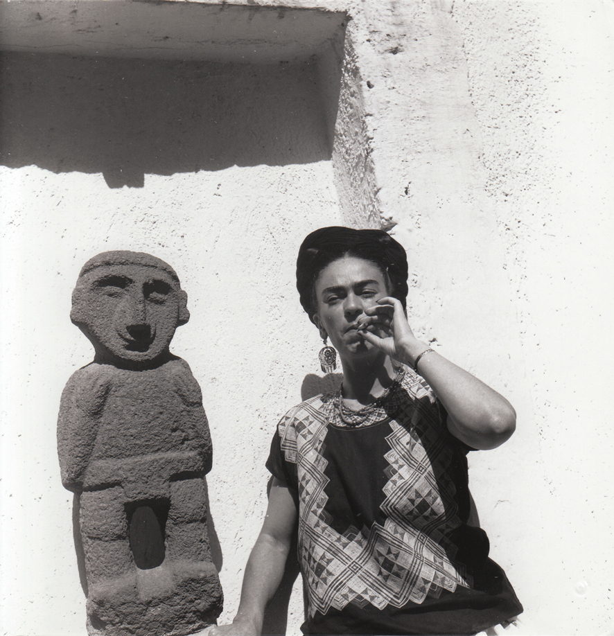 Quando Gisèle Freund arrivò in Messico, nel 1950, la sua intenzione era di fermarsi per due settimane, il tempo necessario per scattare alcuni ritratti agli artisti, pittori e fotografi appartenenti alla comunità locale. Due anni dopo partì, quasi fuggì e in seguito disse: “sentivo che stava arrivando il momento in cui il Messico mi avrebbe divorata, è un paese dai contrasti così intensi, inumani”. Gisèle nel 1933 fu costretta a lasciare la Germania per la Francia. Arrivò in Sud America nel 1942, nuovamente in fuga dal Nazismo, su invito di Sylvia Ocampo fondatrice ed editrice della rivista Sur, che l’avrebbe introdotta nei circoli dell’intellighenzia del continente. Lei comunque sopra ogni cosa voleva incontrare la tempestosa e mitica coppia formata da Frida Kahlo e Diego Rivera. Anche se molto legata al lavoro del muralista (tanto da girare su di lui un film recentemente ritrovato), si avvicinò molto velocemente a Frida.