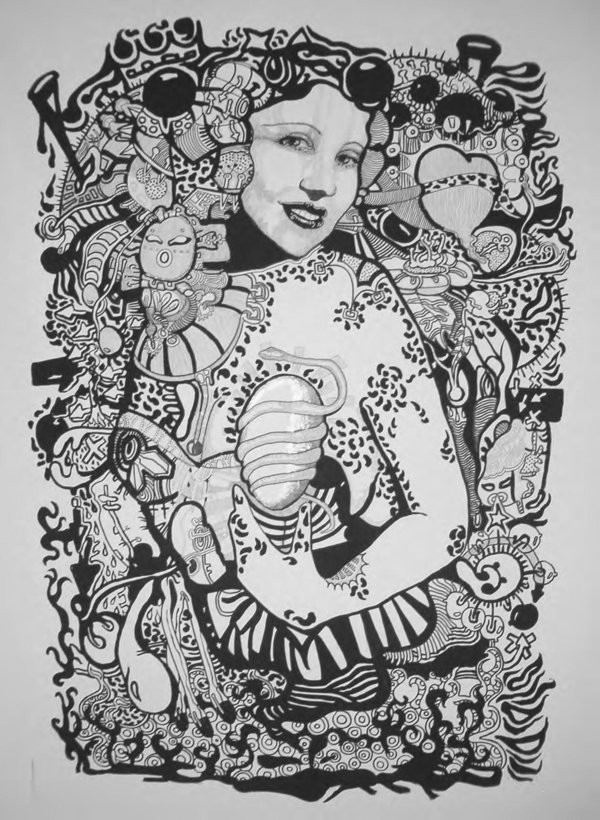 Eroine senza tempo, modernissima ma arcaiche, terrene e spirituali. Un immaginario colto e raffinato che spazia dalle xilografie cinquecentesche al mondo dei tarocchi, dall'art nouveau al fumetto pop, dal graffito urbano al tatuaggio tribale o alla decorazione maya. Un repertorio che non offre spazio al vero, ma che si presta al gioco creativo del probabile e del potenziale. Ogni singolo quadro e' un modo a se', con un suo stile personale e unico, un universo in fieri pronto a disintegrarsi e rigenerarsi. Dal principio appunto.