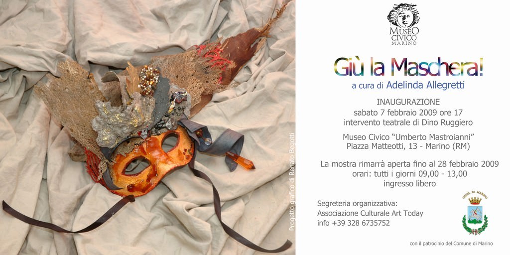 In occasione del Carnevale l’associazione culturale Art Today organizza presso il Museo Civico “Umberto Mastroianni” di Marino (Roma), dal 7 al 28 febbraio 2009, una mostra-evento dal titolo “Giù la maschera!”, a cura di Adelinda Allegretti.