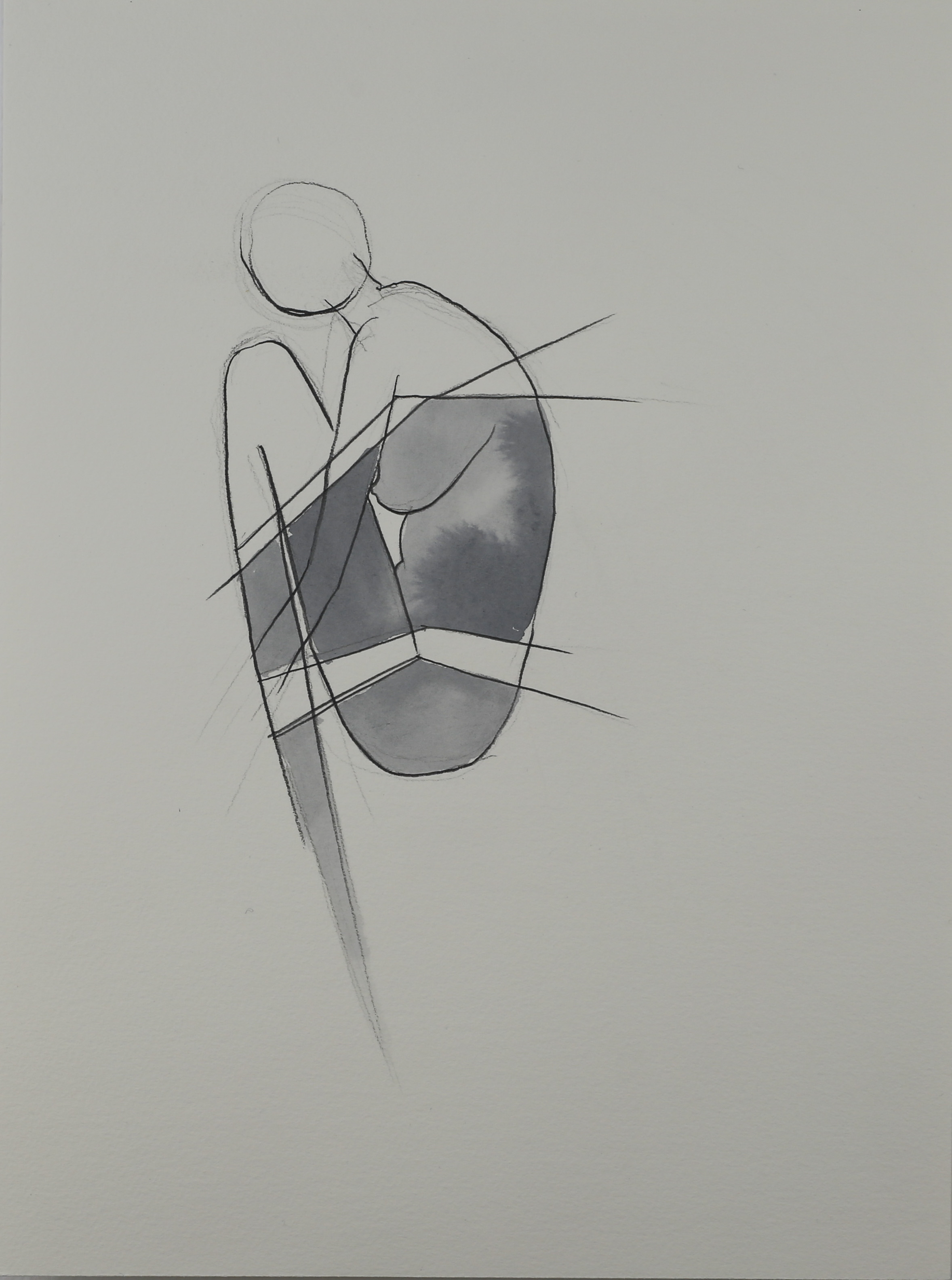 Delineati su uno sfondo indefinito, che priva la percezione di coordinate spazio-temporali, si stagliano corpi femminili dalle fattezze appena abbozzate, incerte nel loro essere come nel loro incedere; Giulia Barone definisce sulla carta dei fogli e dei rotoli anatomie non finite, rarefatte nelle linee, di donne stese, accucciate, inginocchiate (ma anche ieratiche), fisici evanescenti dai tenui colori attraversati da rette e diagonali.
