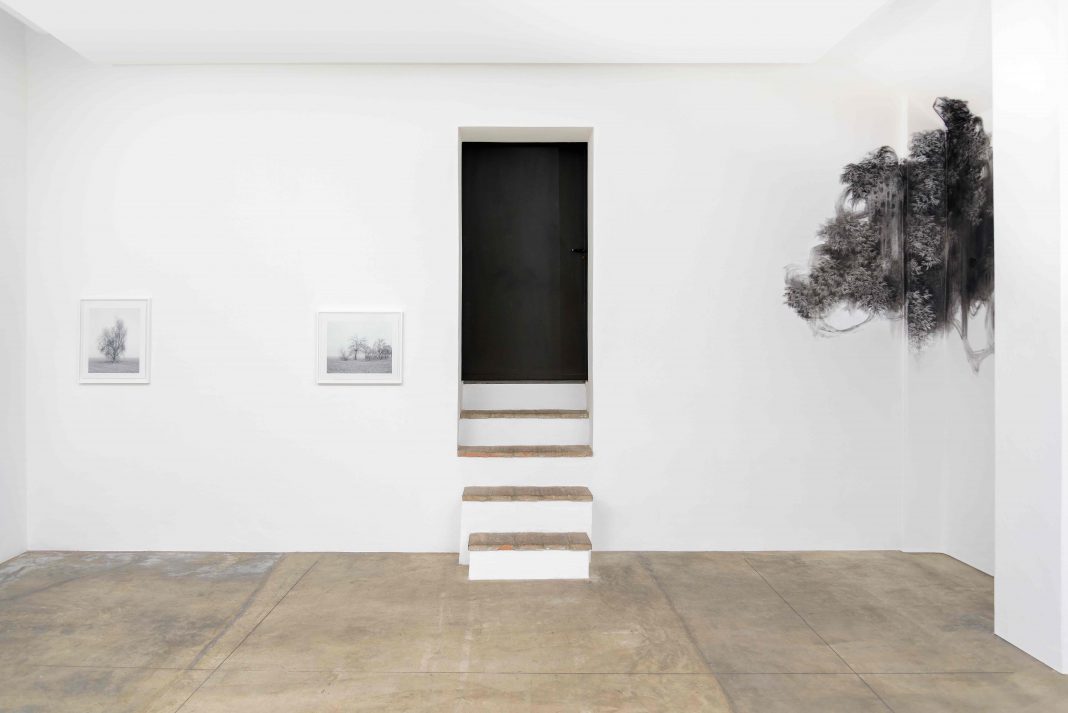 Il fattore relazionale, che accomuna la ricerca di due artiste di differenti generazioni e si manifesta nell’interazione tra uomo e paesaggio – sottolinea Comi – nasce in realtà da premesse differenti e dà vita a esiti linguistici distinti. Se Giulia Dall’Olio presenta opere a carboncino su carta inedite dove la natura supera il formato dell’opera compiendosi in un site-specific, Paola De Pietri racconta, attraverso una serie di fotografie in bianco e nero, la pianura del fiume Po’, il paesaggio che da sempre conosce e percepisce, attraverso alberi e case, interpretandolo come se fosse un frammento di un discorso il cui senso è andato perduto nel tempo. L’esposizione rivela inoltre come il fattore temporale, all’apparenza nascosto, sia una presenza fondamentale nelle singole ricerche: da una parte un lungo peregrinare, che si sintetizza in un attimo, dall’altra un’esecuzione a carboncino lenta e minuziosa che scava in una sedimentazione mnemonica, rapidamente cancellata dal gesto.