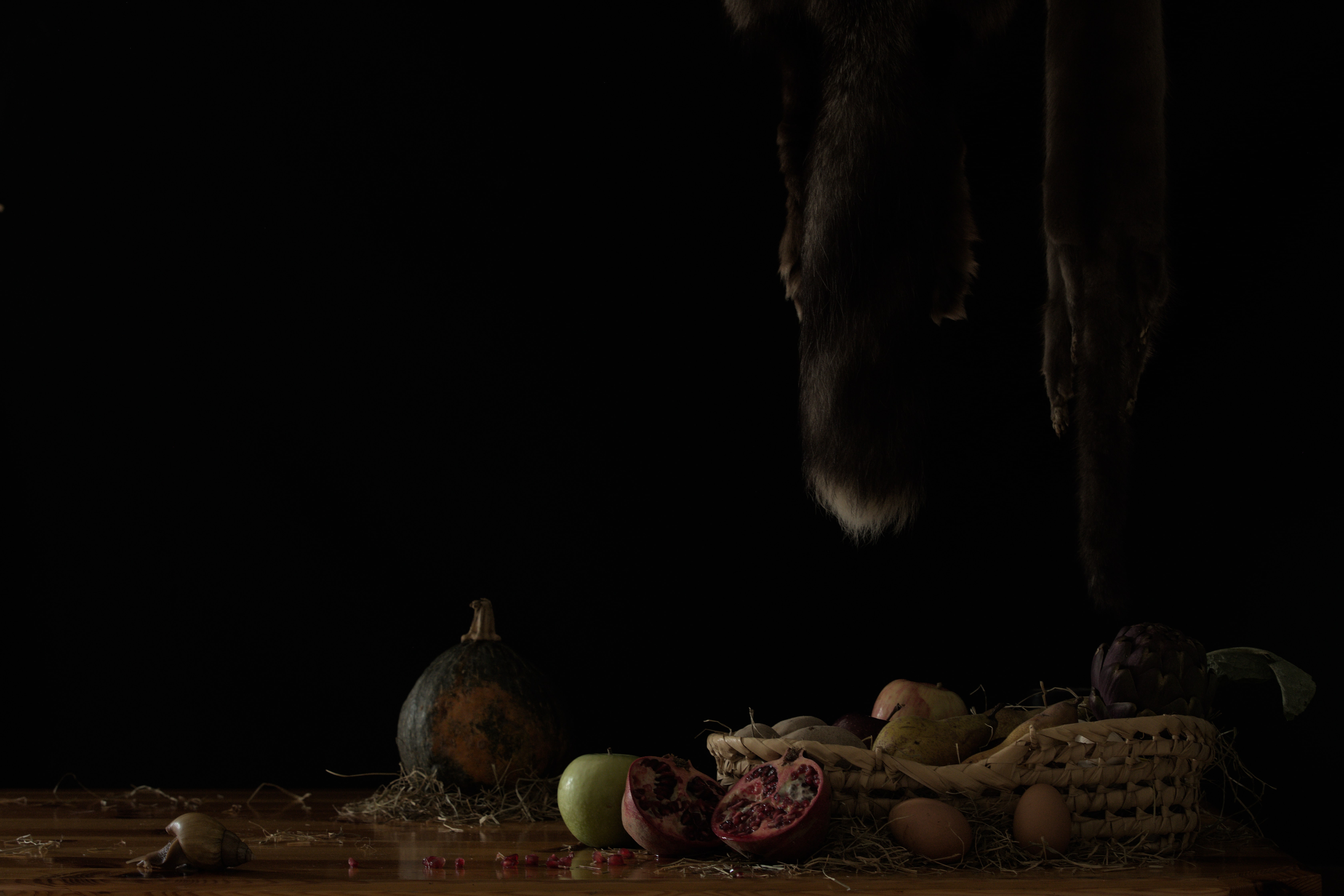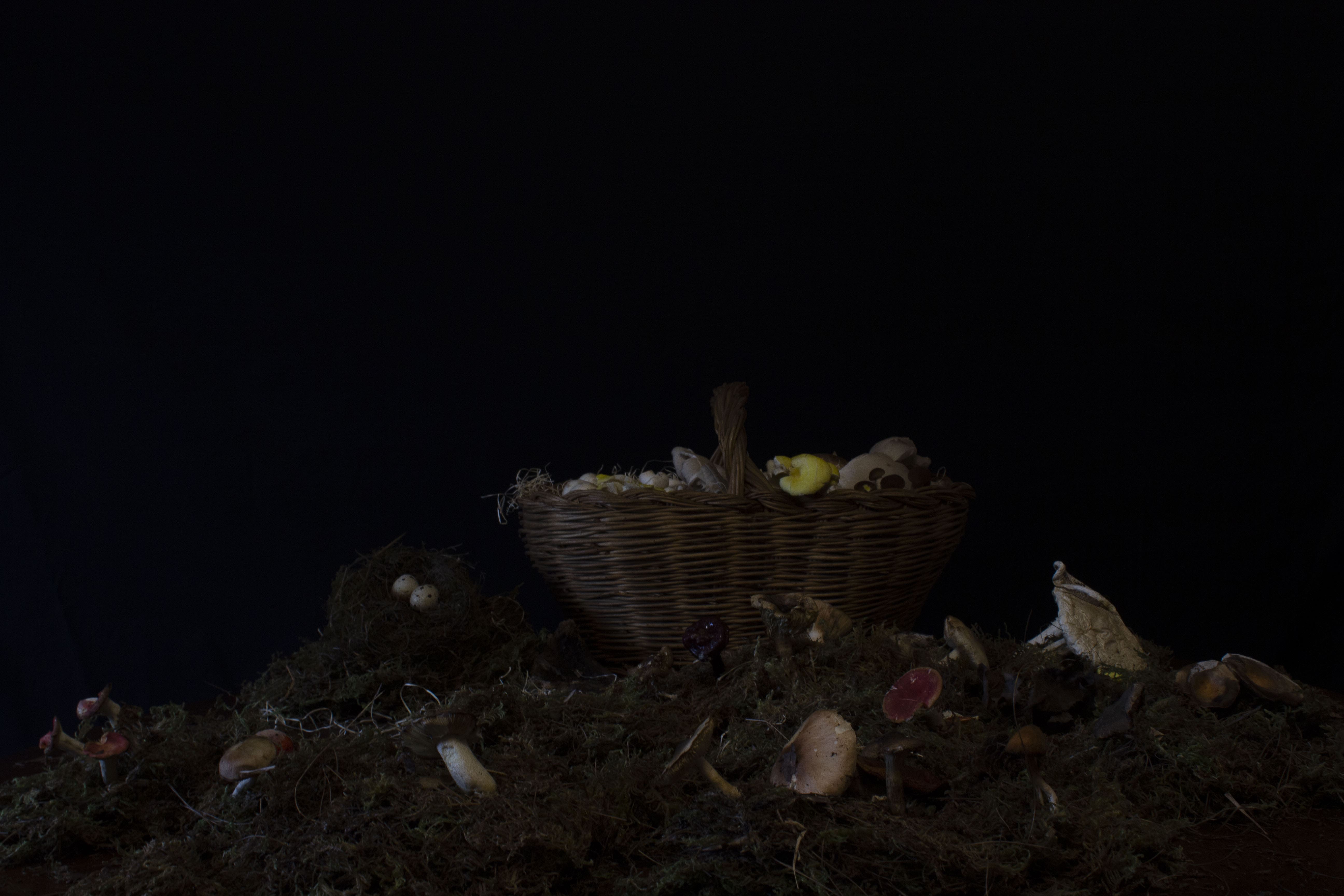 … se i disegni di Di Clemente rimandano alla nobile storia di questa forma d’arte, con una memoria dello stile gotico, le fotografie, alla vista, ci immettono subito in una atmosfera caravaggesca. Su sfondo nero sono poste le “nature morte” assemblate dall’artista, con alcuni punti particolarmente colpiti dalla luce che non proviene dall’esterno bensì dall’interno stesso dell’opera.