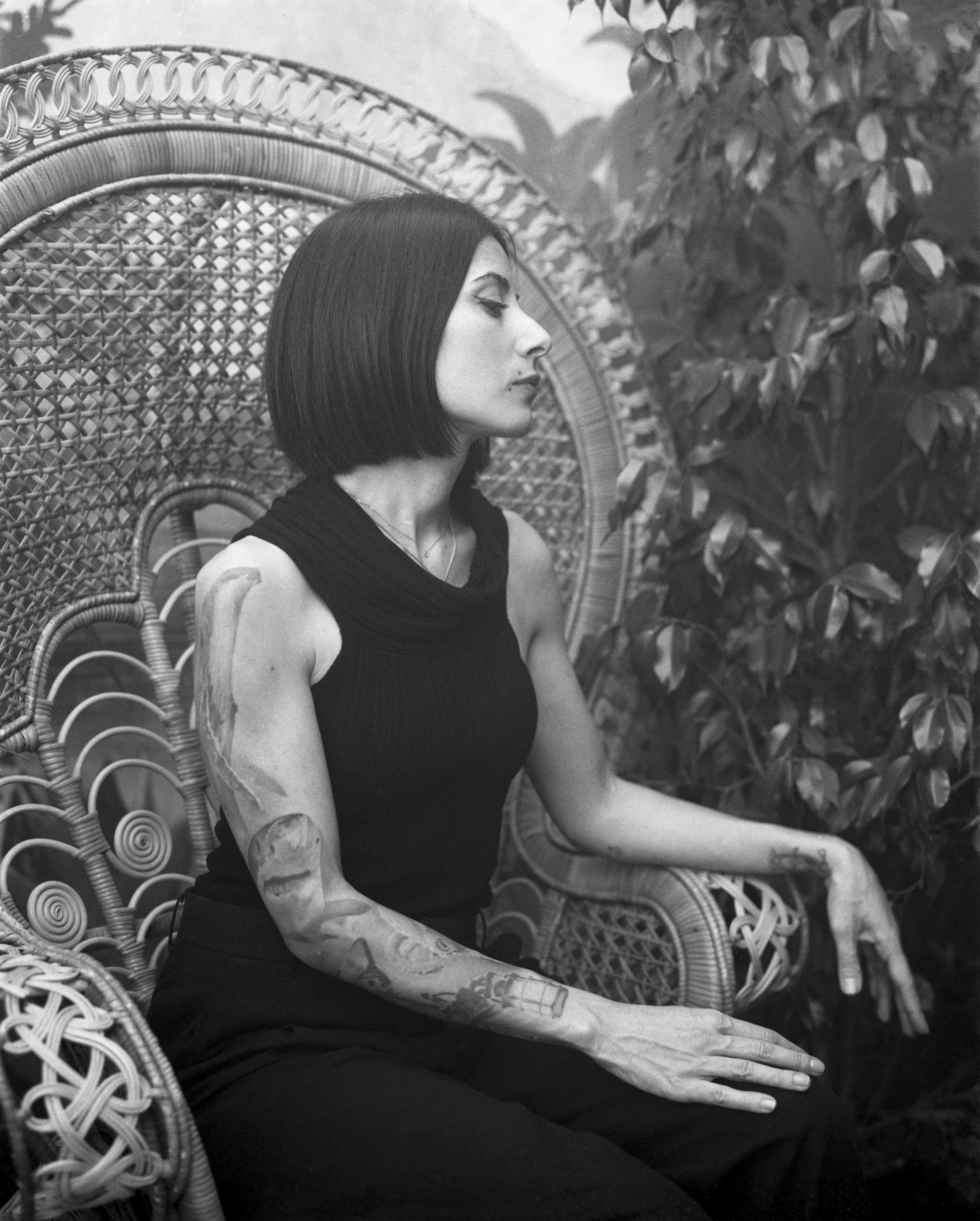 Scelta professionale la stampa d’autore in medio-grande formato, esaltata dall’uso di tecniche e mezzi analogici come la ripresa con il banco ottico. Doti naturali una spontanea passione per la pellicola, un’euforica emozione durante l’intero processo creativo in combinazione con l’andamento lento e riflessivo proprio del percorso intrapreso. L’autoritratto è sintesi estrema.