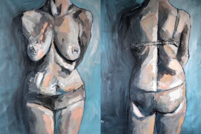 In questi lavori pittorici “Corpi senza testa” l’artista prende in prestito un corpo a lei sconosciuto, quello maschile, per indagare un periodo di forte turbamento legato all’incapacità di espressione, sia individuale sia artistica. Questi corpi, ai quali manca la testa, e in successione gambe e braccia sembrano sacchi di carne senza nessuna volontà, buttati in un angolo o ripiegati su loro stessi in cui i pochi movimenti non fanno altro che aumentare la sensazione di vuoto e inadeguatezza.