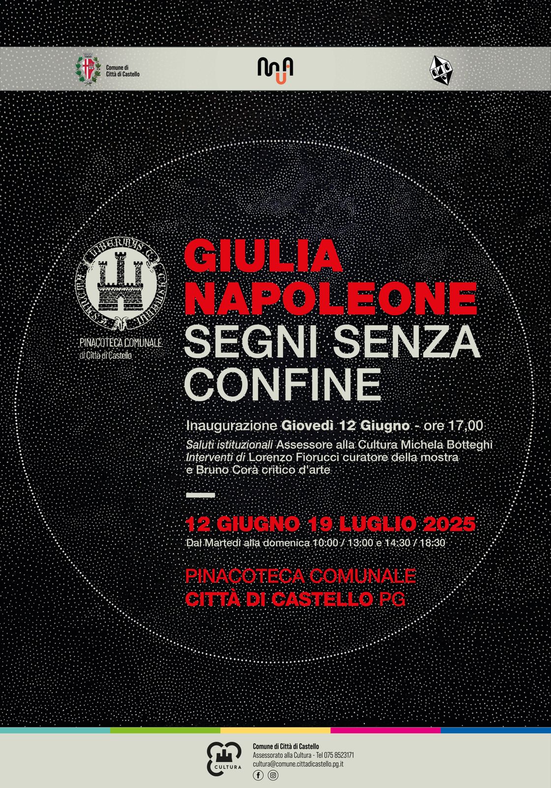 Il comune di Città di Castello e l’assessorato alla cultura, promuove presso la propria Pinacoteca la mostra "Segni senza confine" dedicata all’opera di Giulia Napoleone, figura centrale dell’arte contemporanea italiana, in un percorso espositivo curato da Lorenzo Fiorucci.