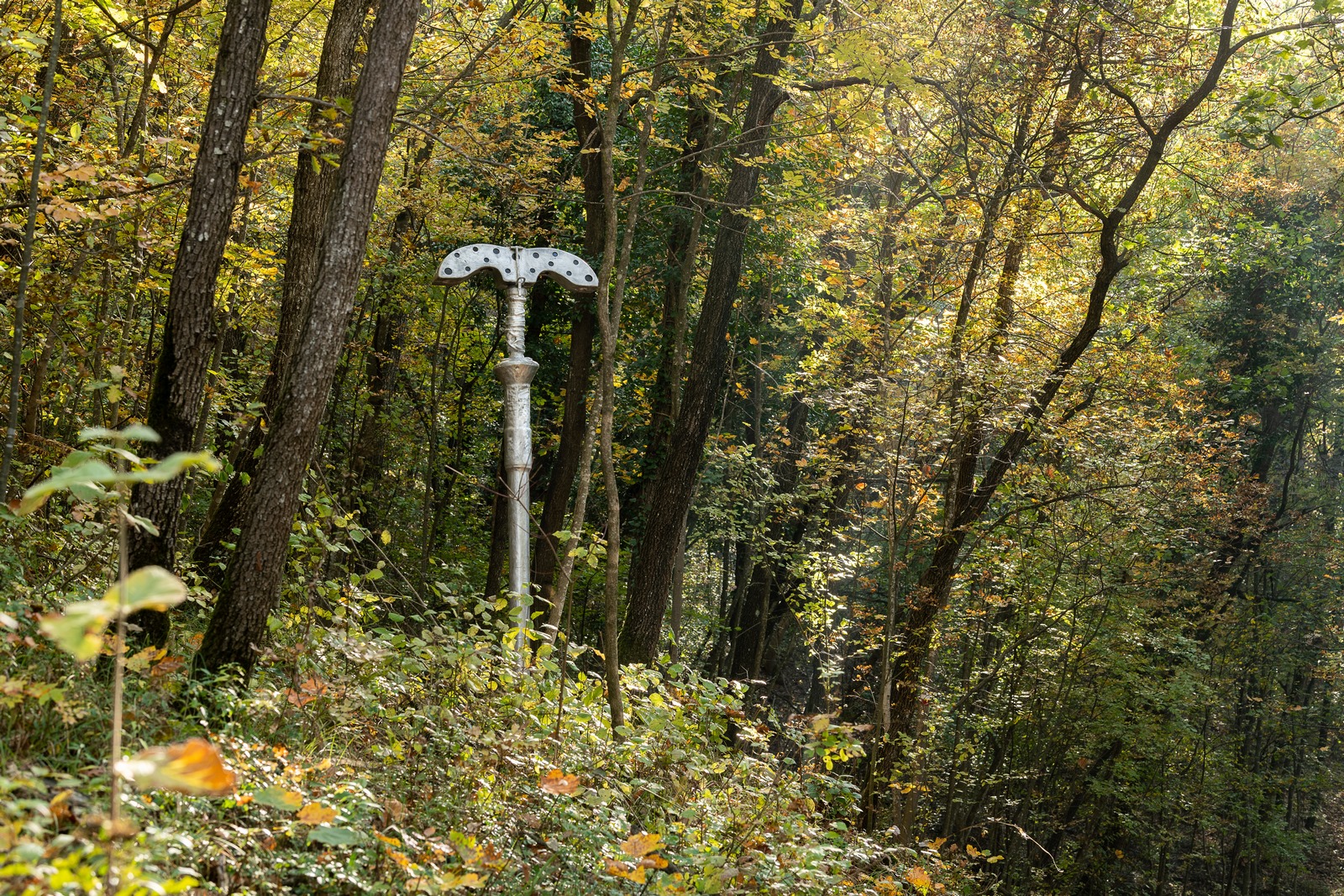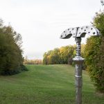 Durante i sopralluoghi eseguiti nel 2022 in occasione di Sconfinamenti, le artiste sono rimaste colpite anche dalla presenza di piccole “edicole” votive, tempietti semplici e pieni di grazia che adornano le campagne emiliane, spesso collocate in punti ben definiti: luoghi di sosta, porte di accesso a città, paesi e borghi rurali, incroci di strade, sentieri campestri o montani. Partendo da questa suggestione, Caterina Morigi e Giulia Poppi hanno immaginato di attuare una sorta di “agopuntura” del territorio, andando a collocare le opere in punti strategici. Da questa suggestione deriva la struttura affusolata de Le adamantine, che sembrano “pungere” il suolo, conficcate a terra da una misteriosa forza invisibile. La presenza delle sculture/installazioni si riallaccia, quindi, anche a un’idea di spiritualità insita nel rapporto tra il fruitore e il contesto che le accoglie: le opere richiamano il pubblico a raccolta, come avveniva in prossimità delle “edicole” votive durante le cerimonie sacre, e suggeriscono punti di osservazione particolari, dalle potenziali sorprese, per esempio luoghi di valore storico-artistico ancora poco noti.