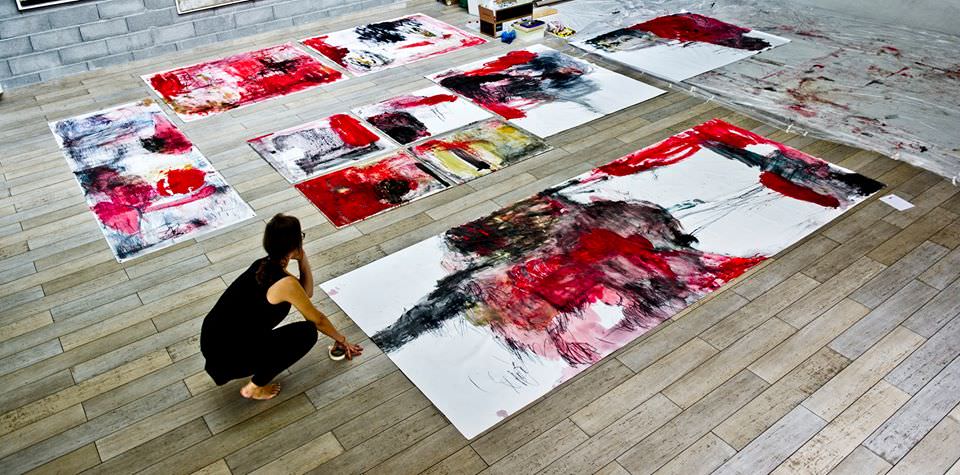 I suoi lavori pittorici sono il risultato di un’azione performativa in cui, l’artista, riesce a distaccarsi completamente da sé stessa, diventando così “puro strumento”. La ricerca libera, autenticamente libera, non ha un’immagine estetica di riferimento.