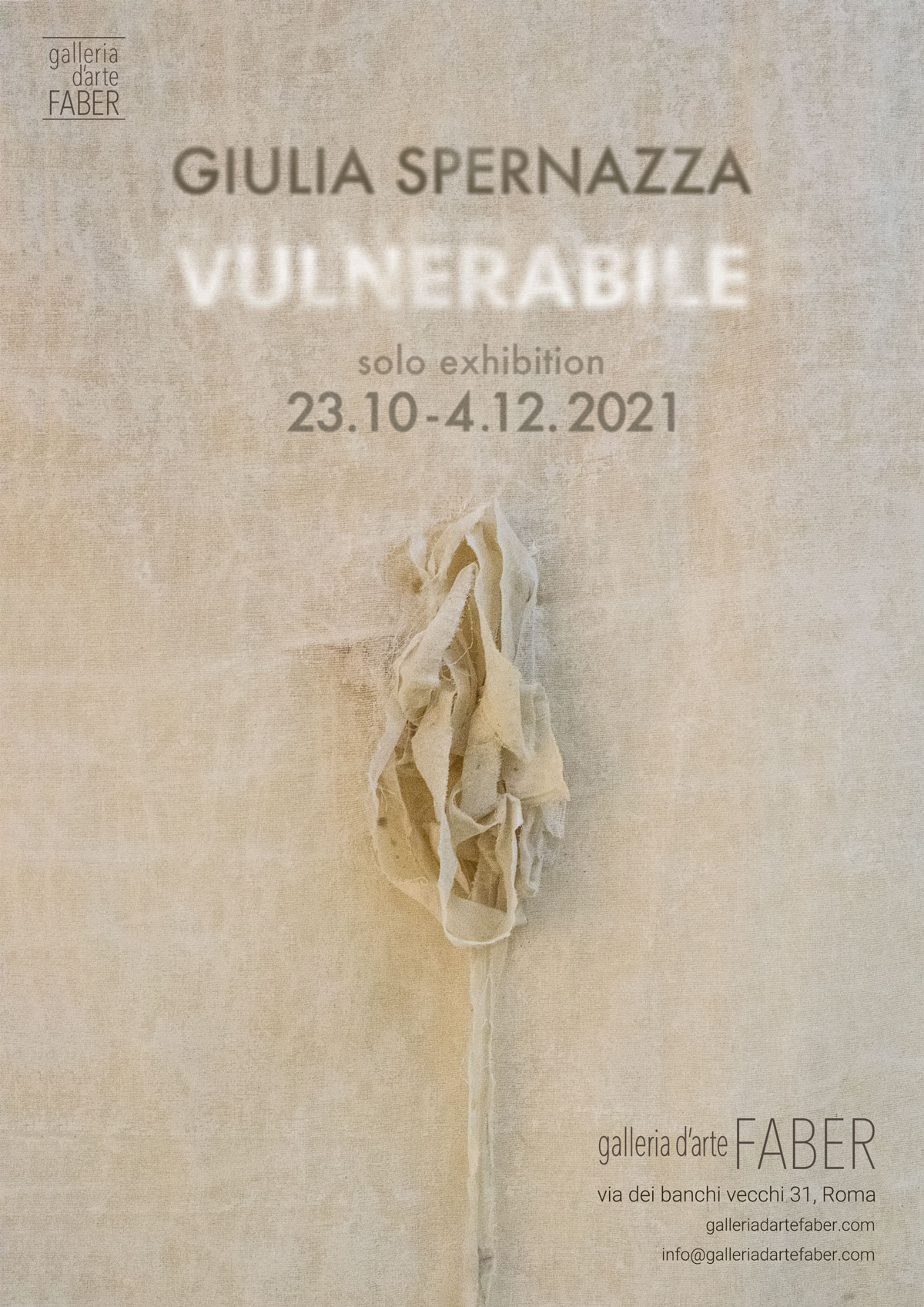 Sabato 23 ottobre la galleria d'arte FABER ospiterà la mostra VULNERABILE di Giulia Spernazza.