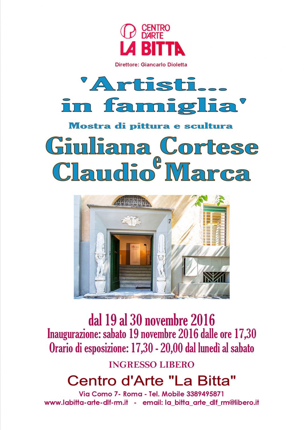 Due artisti, Giuliana Cortese e Claudio Marca, moglie e marito che si esprimono con gli acquerelli lei e le sculture lui, dando vita ad un armonico binomio in cui le tecniche si compensano con gli spazi occupati dai trasparenti colori degli acquerelli e quelli dei volumi sviluppati dalle sculture in terracotta. Gli artisti fanno parte del gruppo del centro d'Arte La Bitta