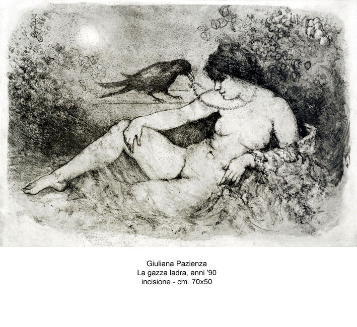 L’opera grafica e pittorica di Giuliana Pazienza - scrive Accerboni - rappresenta a Trieste, città dove l’artista vive e opera da decenni, un unicum speciale, perché in una realtà spesso abituata a esporre le opere di artisti di cultura mitteleuropea e di lontana formazione austrotedesca, ci porta il tono caldo, per noi forse un po’ inusitato, e l’intensità mediterranea della pittura e dell’arte italiane.