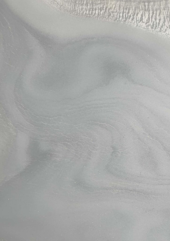 In queste sue parole è contenuto il principio della ricerca di Giuliana Storino, connotata dall’attenzione verso i fondamenti primari: l’acqua e la terra, i valori essenziali resi per mezzo di un processo manipolativo e performativo simile a un rito. Appaiono successivamente come il risultato di un lungo colloquio con il vento e con il tempo, che l’artista indaga a partire dall’atmosfera: il pulviscolo atmosferico che secondo Leonardo da Vinci, rendeva le visioni reali, sfumate e mobili alla vista. Distillando atmosfere, essenzializza la forma –arabesco- e polverizzandola la sedimenta, facendola sfuggire all’asse rettilineo del tempo.