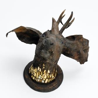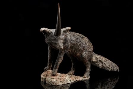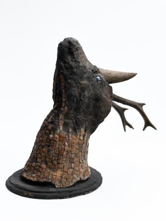 In mostra diverse sculture musive dell’artista ravennate, tutte a soggetto animale; forme ibride, sospese fra mito e una nuova zoologia fantastica che innesta il corno feticcio sulle teste di ognuno dei soggetti trattati, nati – come spiega il titolo – alla fine del sogno.