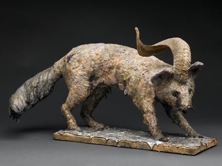 In mostra diverse sculture musive dell’artista ravennate, tutte a soggetto animale; forme ibride, sospese fra mito e una nuova zoologia fantastica che innesta il corno feticcio sulle teste di ognuno dei soggetti trattati, nati – come spiega il titolo – alla fine del sogno.