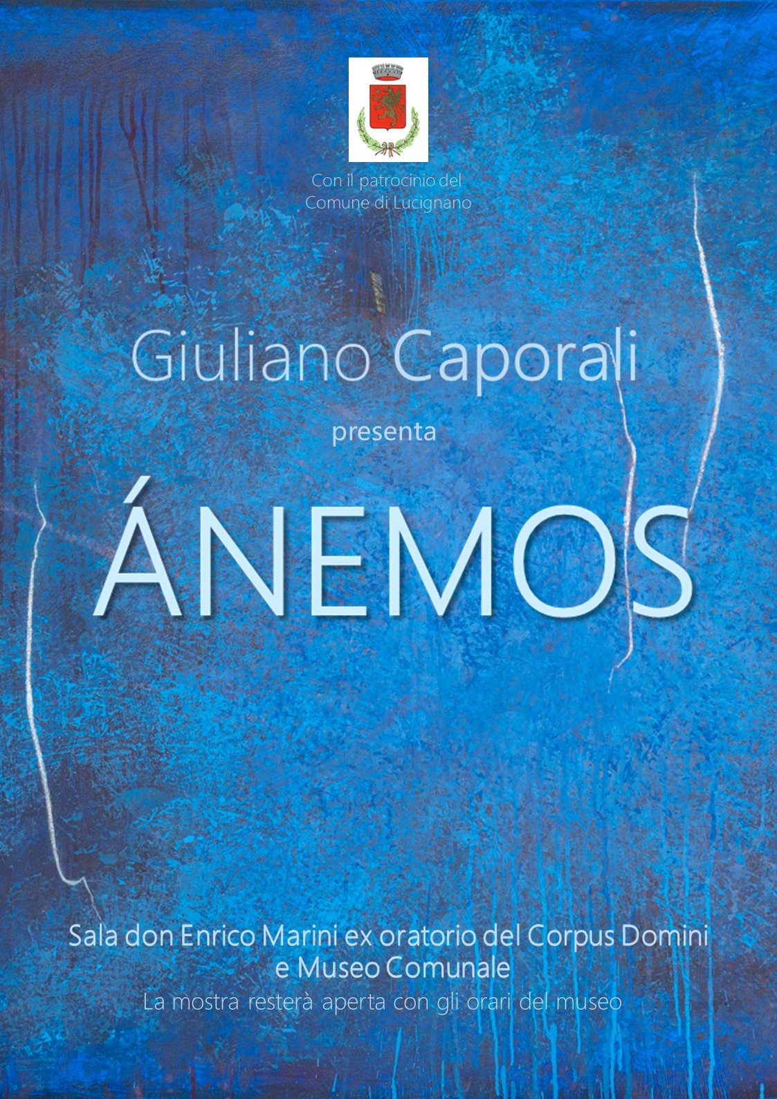 LUCIGNANO - Dal 22 giugno al 4 agosto 2024 la Sala “Don Enrico Marini” (ex Oratorio del Corpus Domini) e il Museo Comunale di Lucignano, in piazza del Tribunale a Lucignano (AR), ospitano “Ànemos”, mostra personale di pittura di Giuliano Caporali.