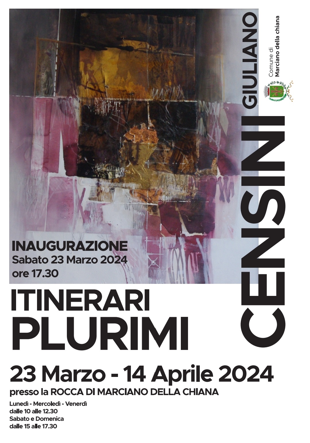 AREZZO - Dal 23 marzo al 14 aprile 2024 la Rocca di Marciano, in Borgo dei Medici 1 a Marciano della Chiana (AR), ospita “Itinerari plurimi”, mostra personale di Giuliano Censini.