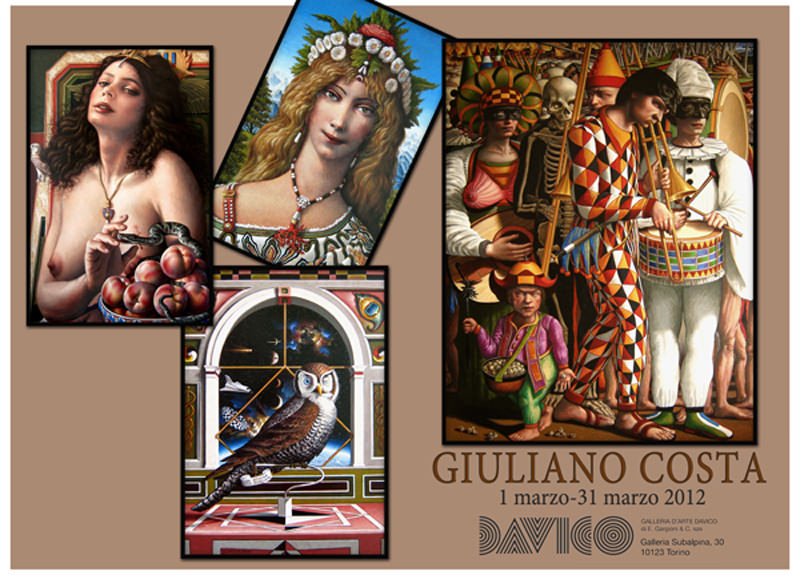 Per tutto il mese di Marzo le sale della Galleria Davico saranno illuminate dai colori, dalle figure e dai paesaggi mirabilmente dipinti da Giuliano Costa, un artista scoperto nel 2010 – quasi casualmente – da Emilio Gargioni, che lo ha convinto a preparare una quarantina di opere per una grande