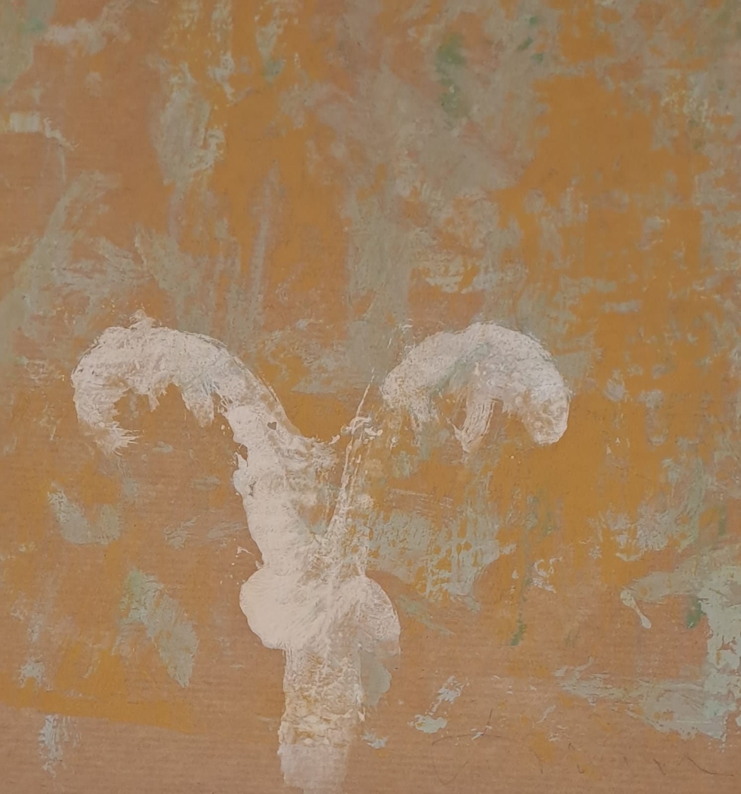 Anche se la carta è una superficie insidiosa e non permette ripensamenti o correzioni, è tutto molto semplice. La carta viene prima leggermente bagnata con una soluzione a base di acqua e colla vinilica, una volta asciutta traccio dei segni, mai simboli, servendomi di rami caduti, perché resistono meglio alla pressione della mano, il colore è acrilico. Quelle più sottili le stropiccio, le spiano, poi inizio con il colore e gomma lacca. Infine guardo il risultato. Tutto qui.