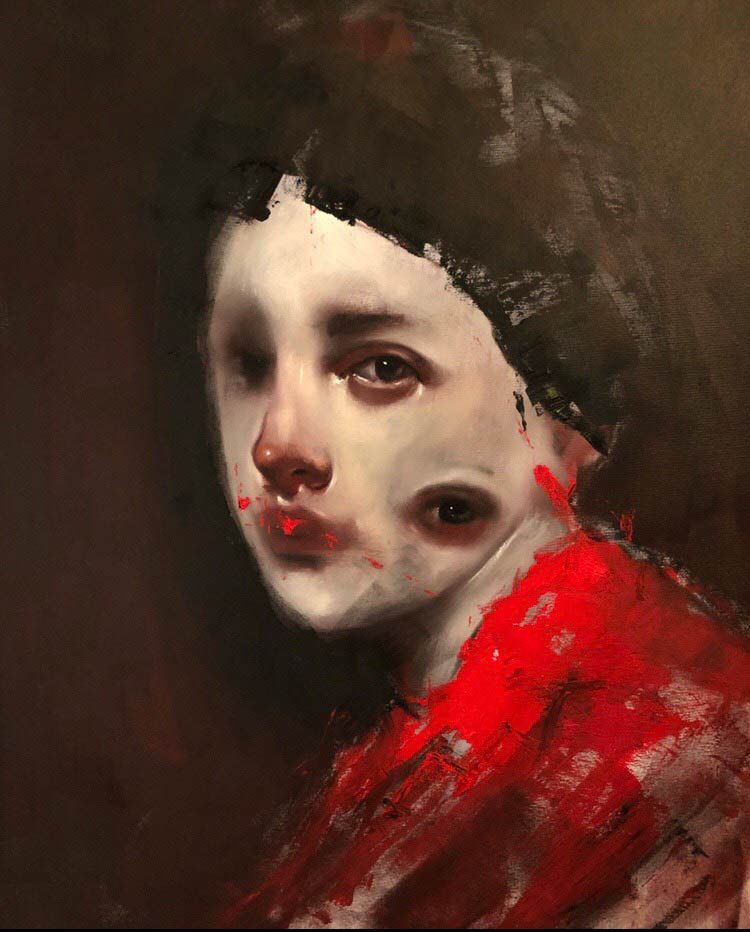 Cuori di Cristallo è il titolo scelto da Macca (Noto, 1988) per la sua nuova, inedita collezione di ritratti. Macca non si sofferma solo sulle caratteristiche fisiche che contraddistinguono ciascun individuo; si concentra anche sugli aspetti intimi, nascosti ed emozionali, facendo così affiorare in superficie una realtà interna altra, che, con la sua forza, delinea gli sguardi e scolpisce gli zigomi. Dallo sdoppiamento dell’immagine e attraverso la moltiplicazione degli occhi cogliamo la complessità dell’identità, costituita da vari elementi che coesistono. I suoi ritratti introspettivi mettono a nudo la persona; la neutralità dello sfondo ne accentua la solitudine e allo stesso tempo il pathos e la fragilità – il cuore di cristallo.