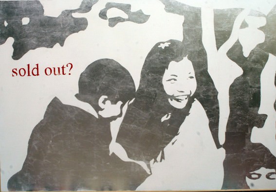 Attraverso la mostra SOLD OUT? Giuliano Tamburini presenta al pubblico un ciclo di lavori recenti, opere pittoriche che non hanno abbandonato i temi di disagio sociale che l’artista ha iniziato ad indagare ormai da alcuni anni. Le opere di medie e grandi dimensioni affrontano temi scomodi che tuttavia occupano ormai quotidianamente le pagine di cronaca dei giornali. La poetica che contraddistingue il lavoro di questo artista non lascia trapelare la drammaticità delle tematiche indagate attraverso una gestualità eclatante o una estetica dell’eccesso, mira piuttosto a scatenare la riflessione attraverso una perfezione tecnica che incanta e colpisce. Le scene dipinte da Tamburini non concedono nulla alla volgarità scontata a cui tanta arte contemporanea ci ha ormai abituati. Le figure di bimbi sembrano straordinariamente sospese in un loro mondo, un universo che risulta anomalo solo attraverso i particolari. Così, le ombre divengono figure gravi, quasi fossero protagoniste di una seconda scena, appena percepibile, e gli sguardi sfuggono allo sguardo del mondo che, noi, ignari osservatori, rappresentiamo. Già il dubbio insinuato nel titolo della mostra assume i tratti di una domanda retorica, un modo per chiedersi se sia superato il limite o, più semplicemente, per mettere in luce la spettacolarità perversa e drammatica di questo mondo. Sul piano della tecnica, Tamburini, mostra un elegante padronanza nell’uso del colore, le superfici colorate sono assolutamente piatte, ad eccezion fatta di quelle felici intuizioni che trovano nel tono su tono una possibile via per una ricerca più materica. Le figure sono costruite su un segno deciso, la luce completa la forza assoluta e fredda che trasmette il colore. Infine le scritte, la presenza del linguaggio che inizia a comparire nelle opere di Tamburini, come a ricordare una umanità aggrappata alla storia, una storia fatta di progresso e civiltà, scritta sulla pelle degli uomini e simbolicamente sull’ “epidermide” del quadro.
