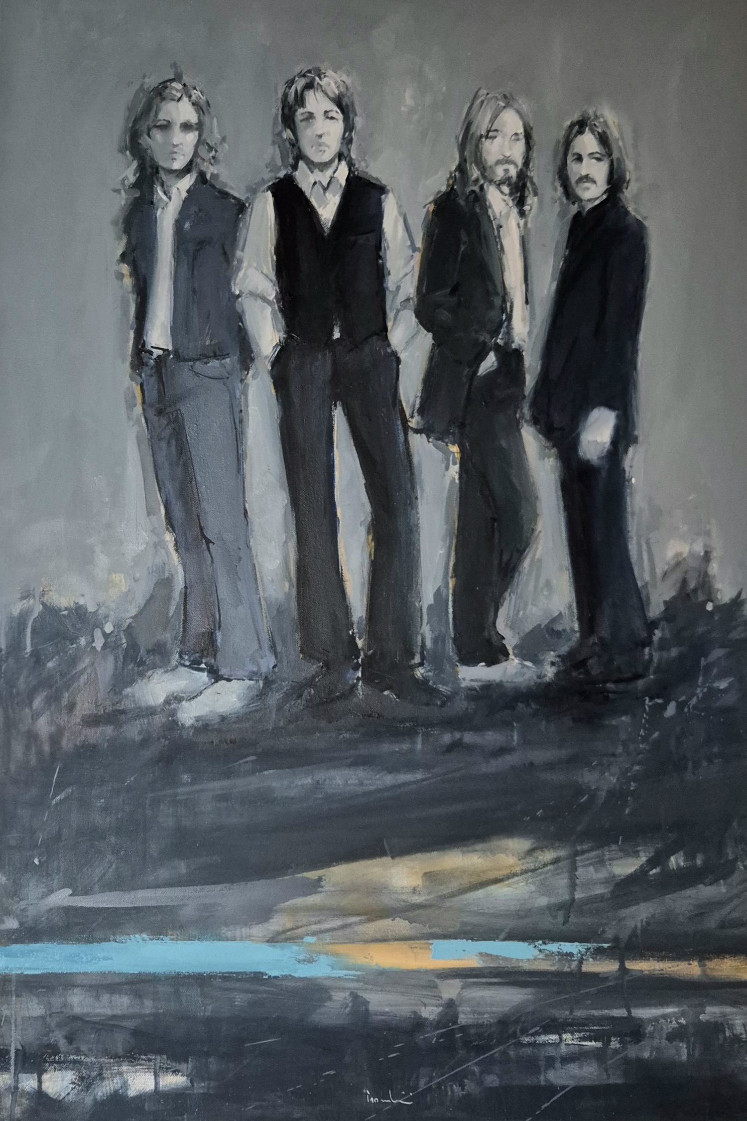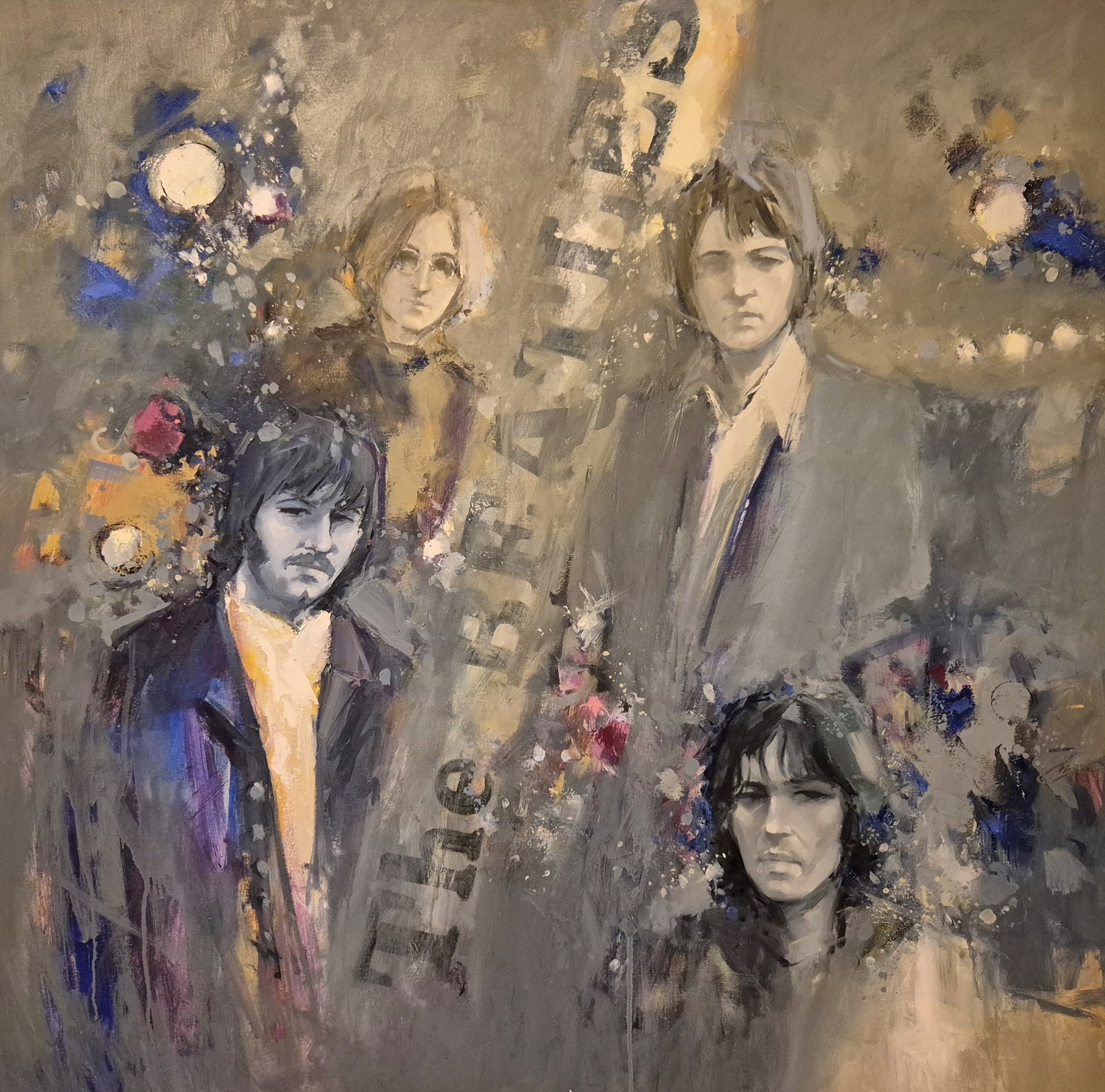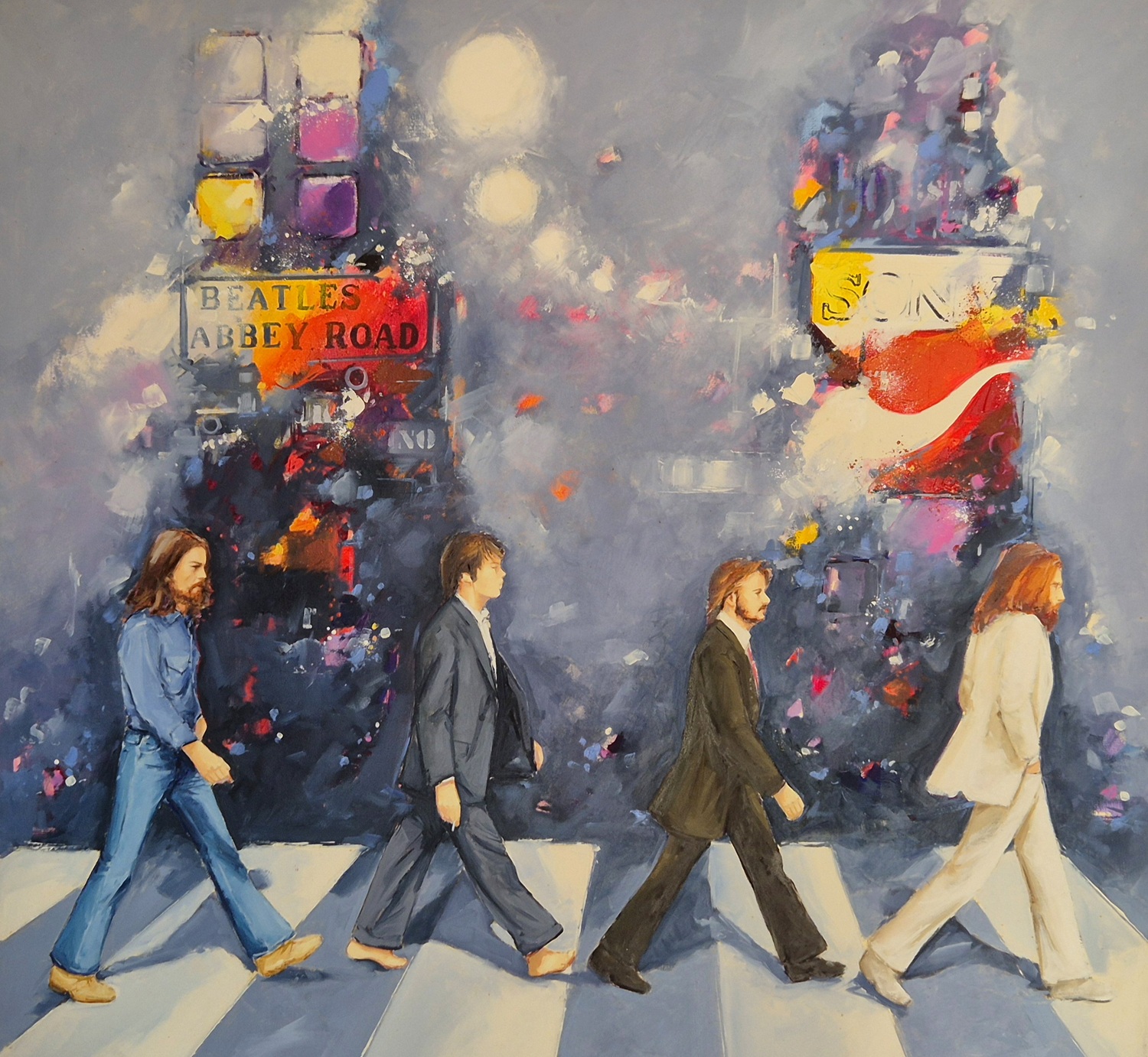 Il visitatore può ammirare tele e tavole in cui i quattro di Liverpool sono rappresentati nei vari periodi della loro intensa carriera. Dagli esordi dei primi anni Sessanta con i famosi capelli a caschetto, passando per la variopinta fase psichedelica, fino ad arrivare all’epilogo del 1970, è possibile ripercorrere la più rivoluzionaria storia musicale del secondo Novecento attraverso citazioni di copertine e immagini iconiche dei “fab four”, immerse nelle inconfondibili atmosfere trombiniane. Ci sono i Beatles della travolgente “beatlemania” che contagiò il mondo e quelli degli album epocali che dettarono le coordinate a tutti gli altri gruppi coevi e dei decenni a seguire, consacrando il rock come vera e propria forma d’arte, in grado di coesistere e dialogare con la cosiddetta musica “colta”.