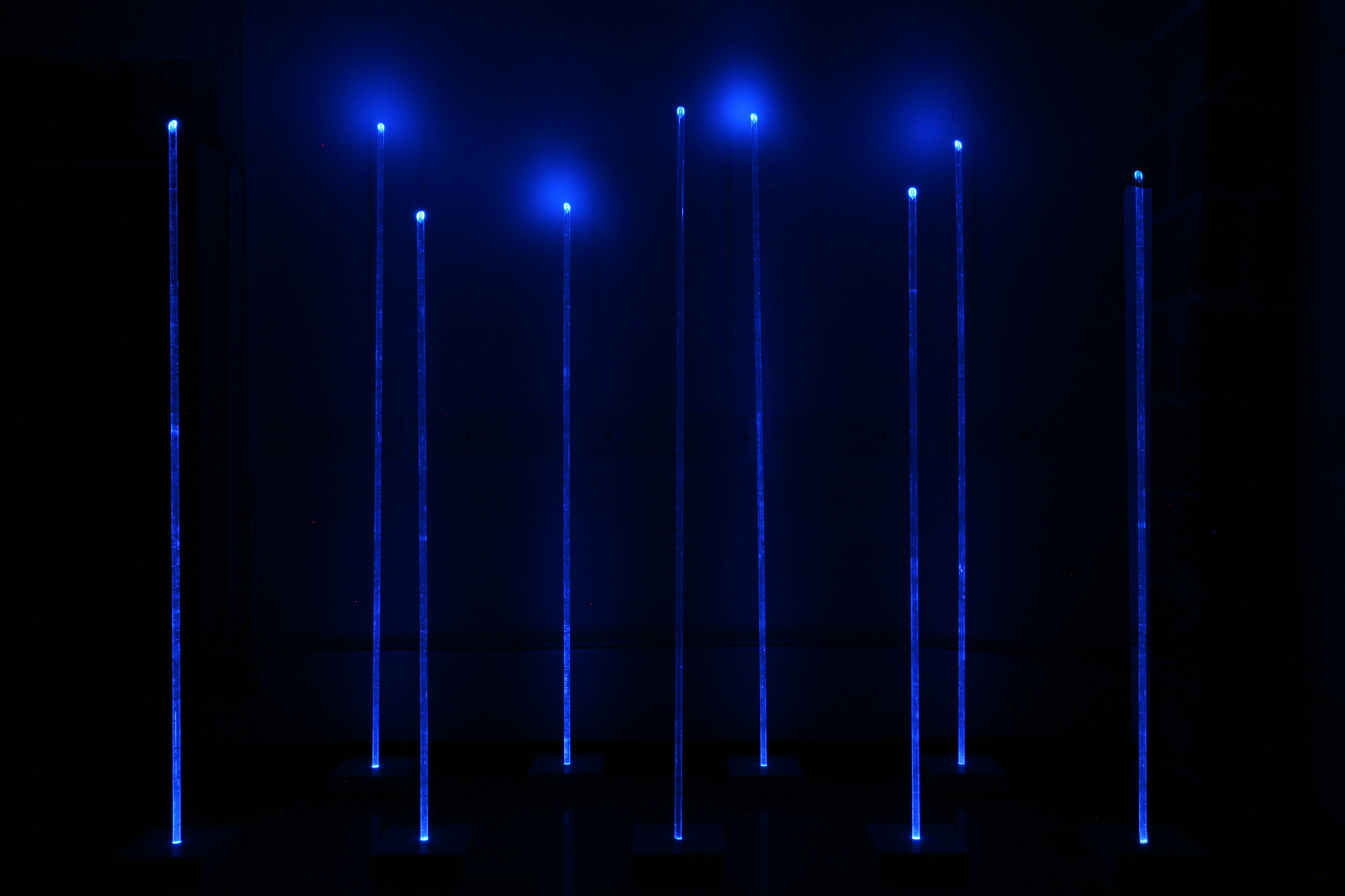 La recente produzione di De Mitri varia da opere grafiche a installazioni. Quattro opere scultoree invadono lo spazio della galleria e lo modificano in un ambiente plasmato dalla luce in cui lo spettatore diventa una presenza concreta e partecipativa dell’installazione stessa.