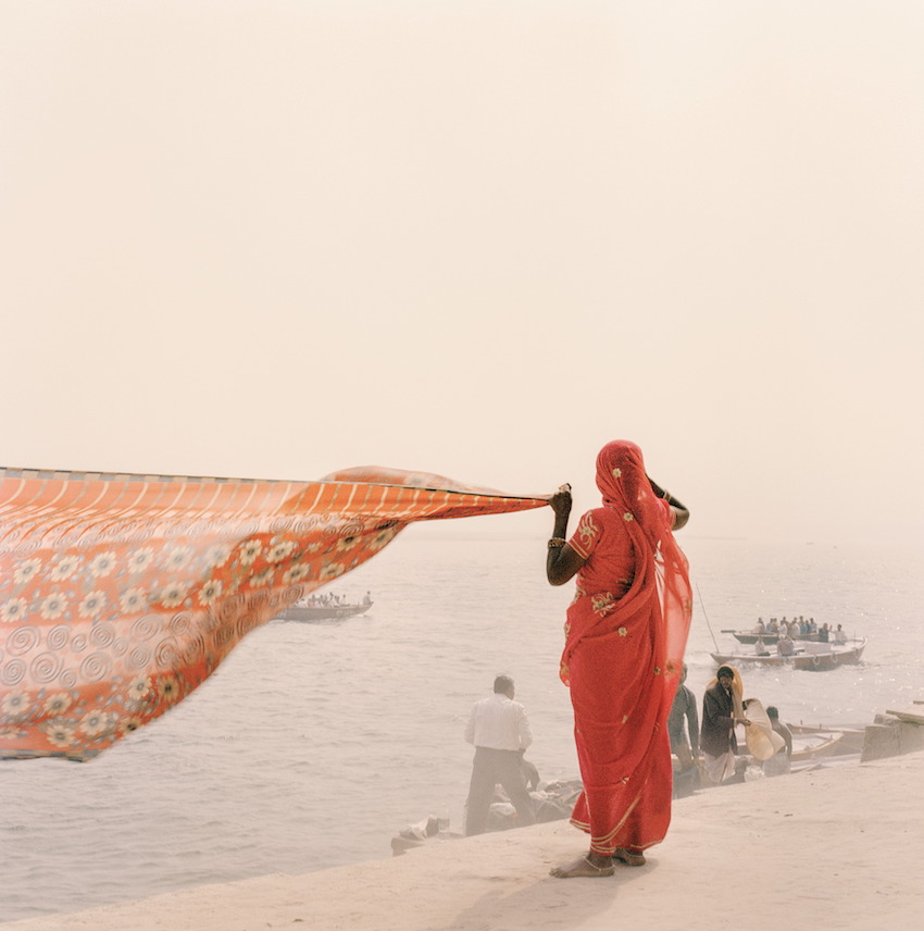Un invito reso anche dalla selezione accurata della carta usata per la stampa che ha una sottile texture che dà un effetto quasi tridimensionale all’immagine. Scattate soprattutto alle prime luci dell’alba, quando la luce è più tenue, le immagini di Ganga Ma sono imbevute di un caldo color sabbia che trasmette la sensazione di aridità della terra. Il processo fotografico non tenta di privilegiare né i primi piani, né gli sfondi, consentendo alla luce e alle sfumature di irrompere nelle immagini senza gerarchia alcuna.