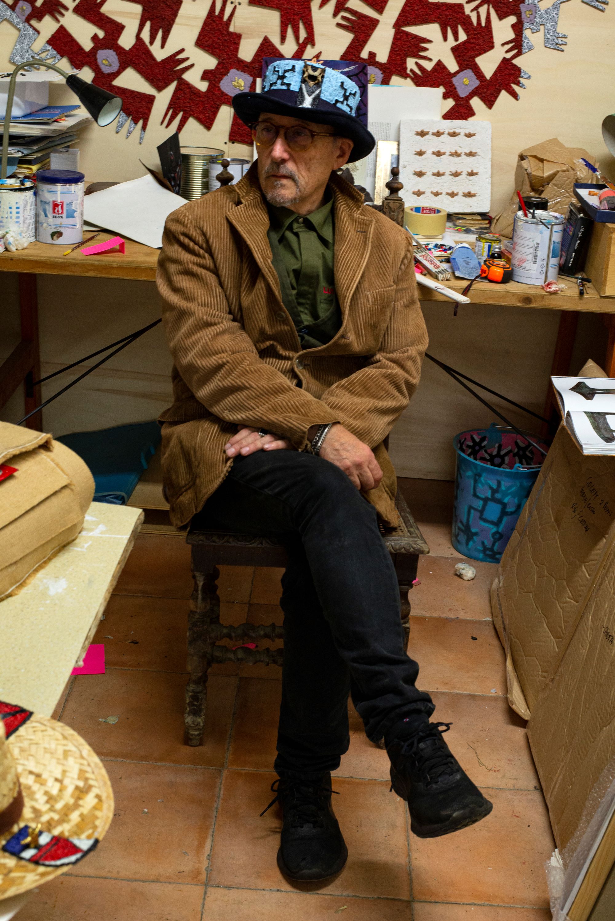Il risultato sono lavori che, sottraendosi alle consuete categorie artistiche, confermano la natura ibrida del registro espressivo di Galgani, che non ammette alcuna distinzione tra pittura e scultura, materiali vegetali ed elementi industriali, strumenti tradizionali e tecniche personali. L’organico e l’inorganico convivono nelle sue opere, richiamando il contrasto tra autenticità e artificio, energia vitale della natura e azione dell’uomo. L’intento è anzitutto risalire alle radici dell’identità toscana, quella in cui Galgani si riconosce e che alimenta la sua ispirazione fin dagli esordi figurativi con opere ispirate alla scultura arcaica etrusca, per poi approdare, diversi anni dopo, ad oggetti come vanghe, forconi e falci – vessilli del lavoro umano che entrano a far parte del suo repertorio simbolico sia come installazioni che come elementi rielaborati in chiave grafico-pittorica – e quindi giungere ai Paesaggi evasi, zolle di terra toscana prelevate idealmente dal contesto d’origine e messe in un vaso per alludere al paesaggio come insieme di memorie da tramandare e proteggere. Un modo, quindi, per esprimere il suo legame con la cultura e i “segni” del territorio in cui vive e più in generale con i valori della terra intesa come patrimonio di simboli e saperi che rischiano di andare perduti nell’era della globalizzazione.