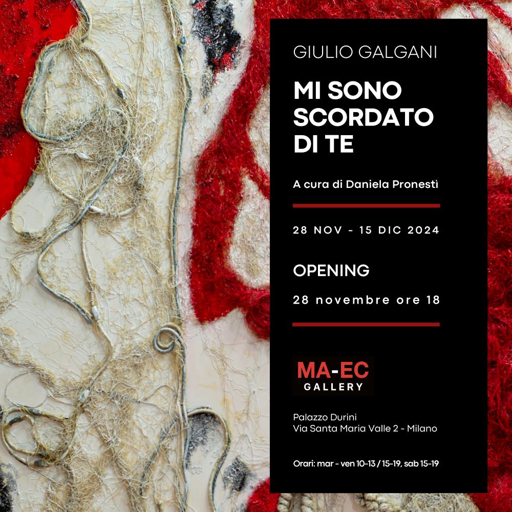 Inaugura il 28 novembre alla MA-EC Gallery Mi sono scordato di te, mostra personale di Giulio Galgani a cura di Daniela Pronestì