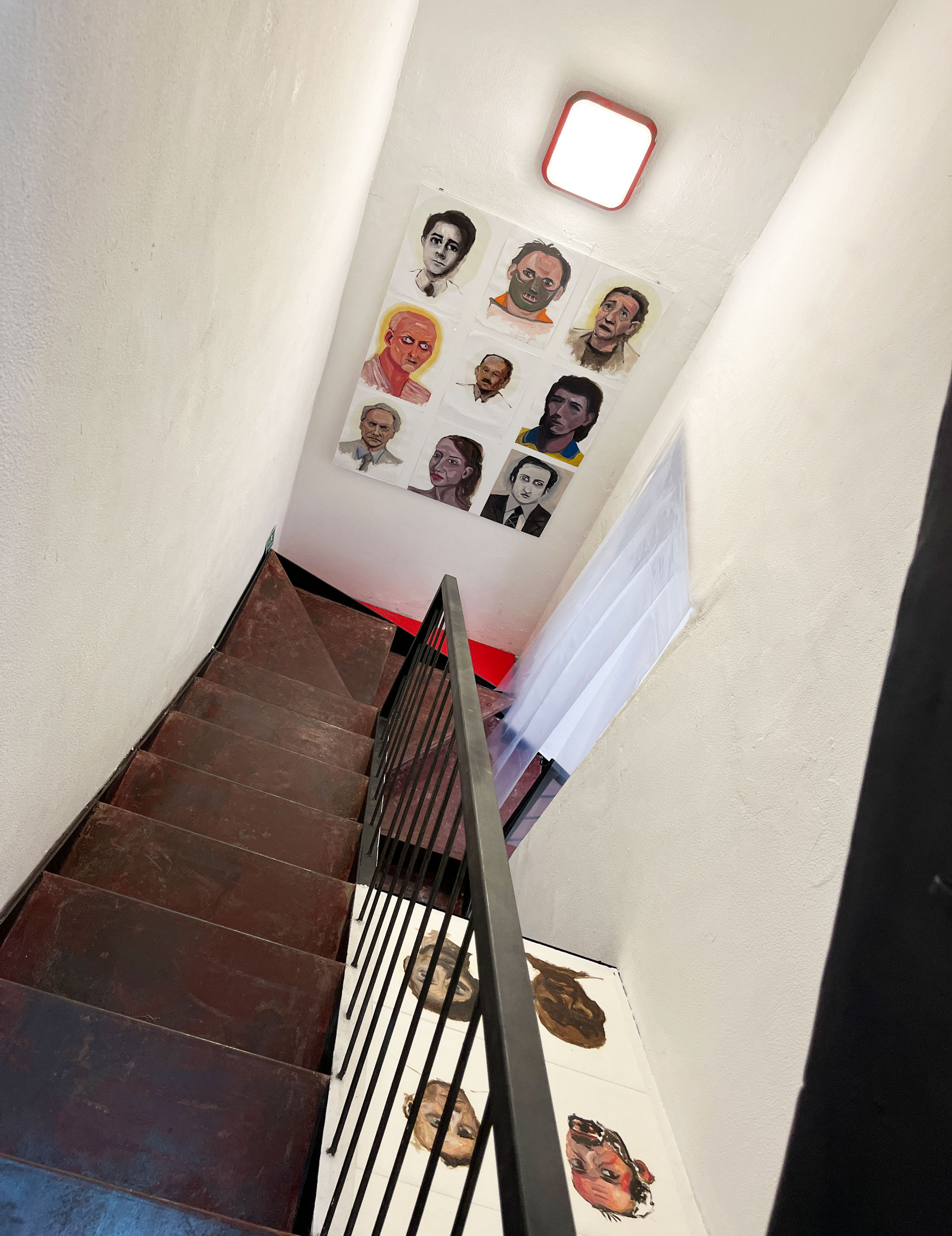 La mostra ha volutamente l’assetto di un cantiere, uno studio improvvisato in cui l’artista presenta “in rotazione” parte di questo monumentale work in progress iniziato nel marzo 2020, quando l’isolamento forzato e l’assenza di contatto fisico lo conducono ad un’urgenza di rappresentazione del volto e delle espressioni umane.