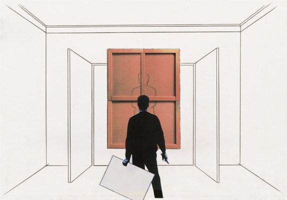Per la personale da Giacomo Guidi, Giulio Paolini ha realizzato due nuovi lavori, introdotti da undici collages esposti nella stanza d’ingresso. Il titolo della mostra, Sulla soglia, come pure le opere su carta si richiamano al secondo capitolo del libro pubblicato di recente dall’artista, che funge da guida per i suoi attuali progetti espositivi (G. Paolini, L’autore che credeva di esistere, Johan & Levi, Milano 2012).