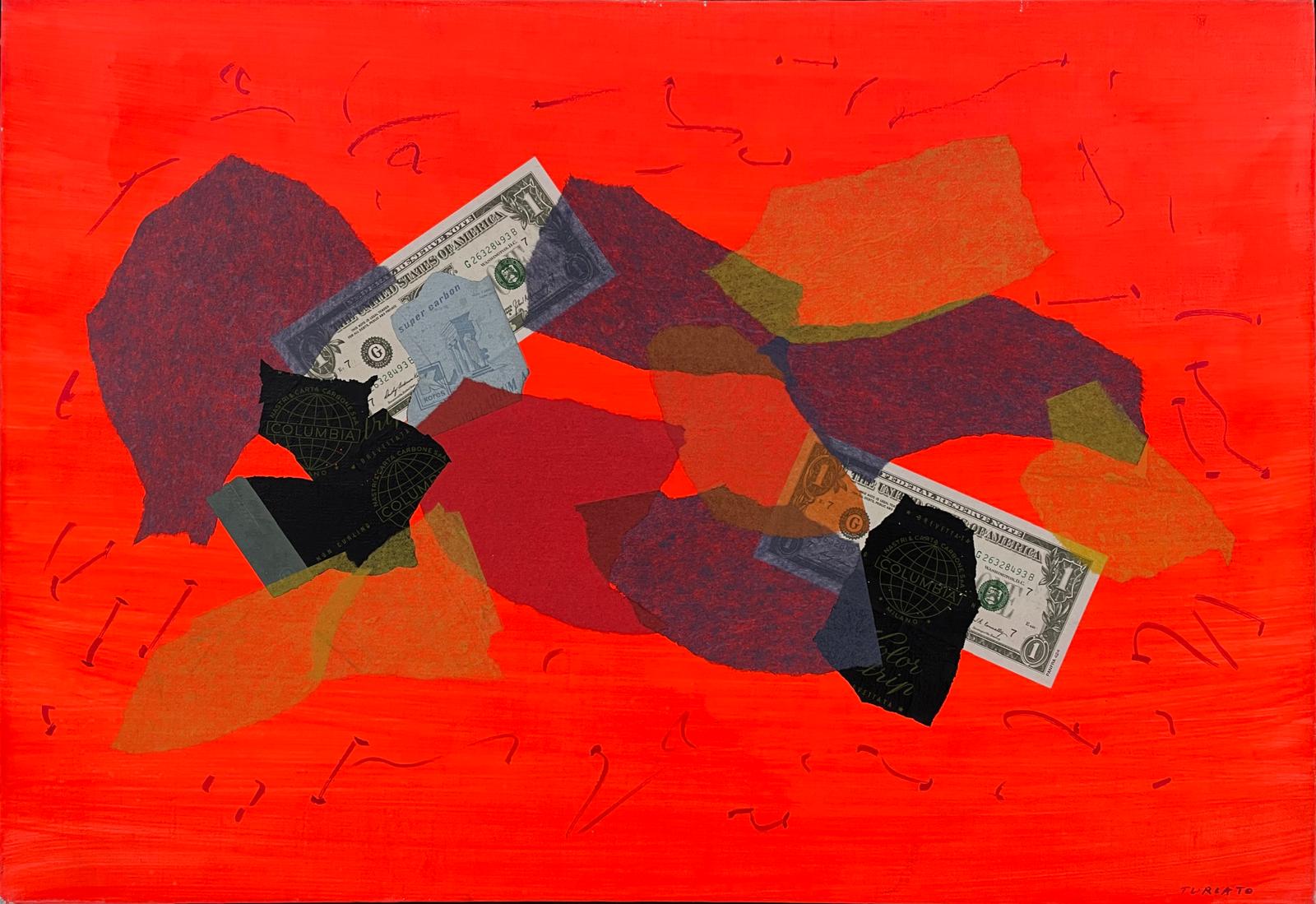 L’Artista ha una prospettiva artistica e creativa che si muove di pari passo con l’ideologia politica, e la sua sensibilità, fa di ogni caratteristica e valore morale opera e creazione. Turcato non si pone limiti, ed è evidente nella scelta arguta di rendere il suo astrattismo vivo e tangibile, selezionando colori e modus-operandi (impronte delle mani, utilizzo di vere banconote, sabbia..) . Vivo e verace perchè acconsente il fruitore di entrare nel suo spazio privato, è l’artista stesso che si immedesima ed identifica nell’opera.