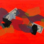 La mostra sarà contenitore di all’incirca venti opere dalla fine degli anni ‘50 alle ultime produzioni. Le gommapiume sono tra i progetti più interessanti di Giulio Turcato, “Alleluja” presente nel progetto espositivo, è un’opera della fine degli anni ‘60, l’uso di questo supporto è per lui ricerca e sperimentazione, la gommapiuma riportata su tavola da un senso di tridimensionalità, che si fonde poi con la pittura ad olio ed acrilico applicata successivamente; iconico e pioniere di questa tecnica apre il ciclo delle superfici lunari. Passando poi per opere come “Forme” degli anni ‘70, dove l’obiettivo che si pone è quello di dare ritmicità alla tela, espandendo il gesto in un fare più liberatorio e colorato, appare quasi come un gioco, le figure convivono e si attraversano coniugando un liguaggio autonomo. “Una lira”, del ‘73, è rappresentazione delle diverse ricerche di Turcato, come l’applicazione su tela di vere banconote, il collage fa parte della sua sperimentazione perlopiù tra gli anni ‘60-’70, passa dall’applicazione di pillole, alla sabbia, al denaro. Questa sua anticonvenzionalità genera una sorta di astrattismo simbolico.