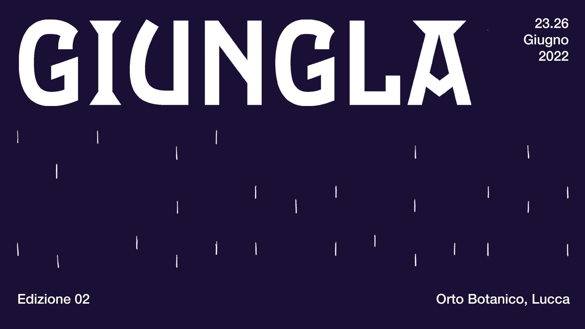 GIUNGLA è un progetto di S.o.f.a. APS in collaborazione con: Comune di Lucca - Orto Botanico - Biblioteca Civica Agorà. Con il contributo di: Fondazione Cassa di risparmio di Lucca, Fondazione Banca del Monte di Lucca, SAHA Association. Supporters: CCH Tagetik expert solution Wolters Kluwer, LAMM Analisi, Farmacia Maffei, Mecenatismo Postmoderno – Elisa Mencarini, Biennale di Çanakkale, Ass. Amici dell’Agorà, A.DI.PA, Talea. Partner tecnici: LuccArtigiani, Ostello La Salana, DACCAPO, NANINA.