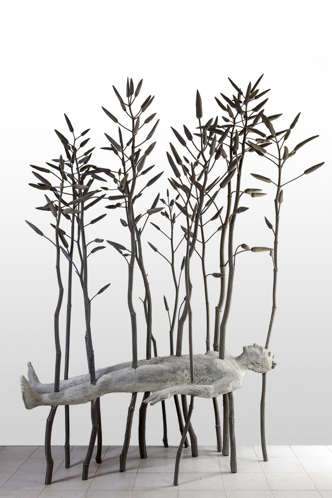 «Paludi - segna la fine di un’umanità che ha iniziato il suo sviluppo con le migrazioni e l’evoluzione, e si trova oggi in stato di inerzia e di debolezza fisica e psichica. I boccioli di acanto e i semi di girasole ibernati nel gesso, oggetto di studio e di una mostra al Parco Archeologico di Agrigento nel 2017, sono precedente tappa a questa mostra che urla il riscatto di una natura che invischia il corpo e costringe al silenzio. Un’umanità che appare immersa nelle sabbie mobili, muta e acquiescente. I livelli di lettura di ”Paludi” hanno un piano più fisico in cui si descrive un’esistenza stagnante e indolente talmente priva di energia vitale da essere assorbita dalla vegetazione e dal fango e uno più sottile dove la decomposizione e il silenzio sono il passaggio necessario alla trasformazione. Come nella ricerca della pietra filosofale è dalla dissoluzione che inizia il cambiamento e così i corpi mostrano parti scabre come in un processo di putrefazione. (...) Il lavoro dello scultore ha una fisicità con l’opera e i materiali certamente più impegnativa che in altre tecniche; il corpo a corpo che questa tecnica impone, determina un confronto con la realtà dello spazio e della materia, che la pone fra la pittura che suggerisce e l’architettura che contiene».