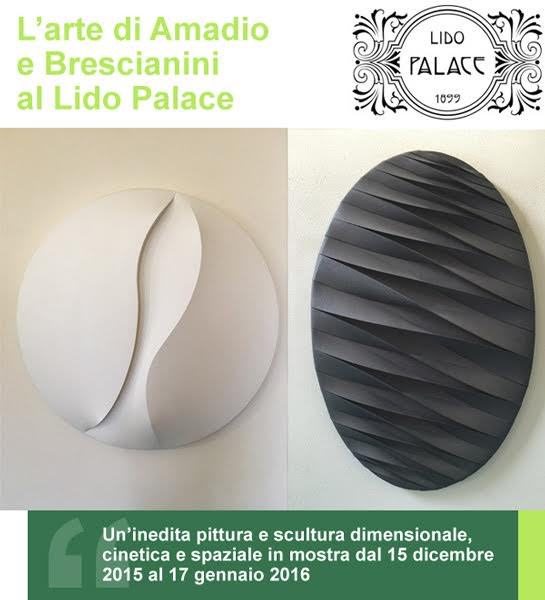 L’arte contemporanea sposa ancora una volta il Lido Palace di Riva del Garda (TN), struttura di charme sulla sponda trentina del Lago di Garda. Dal 15 dicembre 2015 al 17 gennaio 2016, il lussuoso 5 stelle in cui si fonde l’anima della Bella Epoque e il design contemporaneo, si apre, nei suoi spazi comuni, ad un’esposizione firmata dagli artisti Giuseppe Amadio (Todi 1944) e Angelo Brescianini (Palazzolo sull'Oglio 1948).
